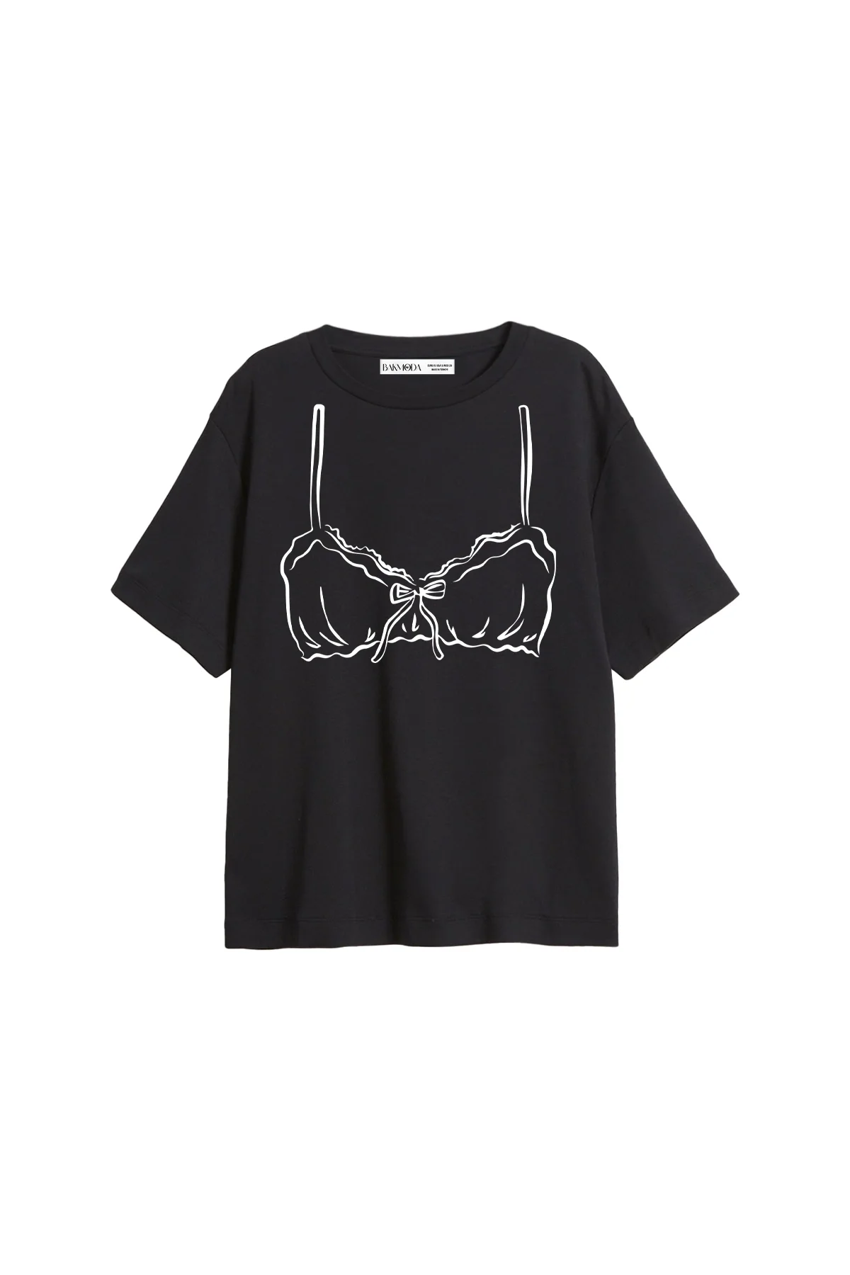 Lady Ribbon Baskılı Relaxed Fit Siyah Kadın Tshirt, Bak Moda'nın kendine özgü tasarımı ile stilinizi tamamlayacak mükemmel bir seçenektir.