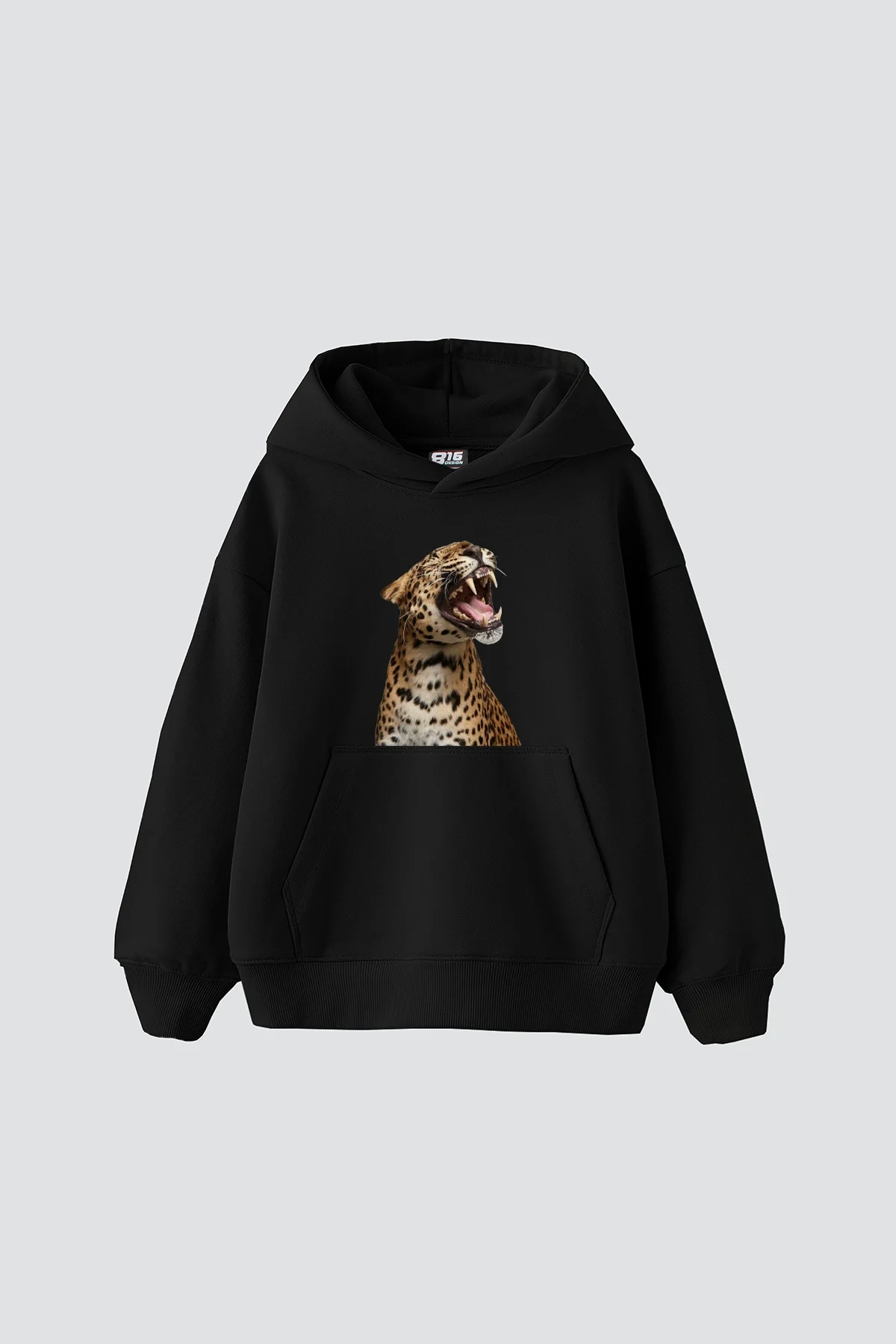 LEOPARD SİLUET BASKILI OVERSİZE UNİSEX PREMİUM SİYAH HOODİE