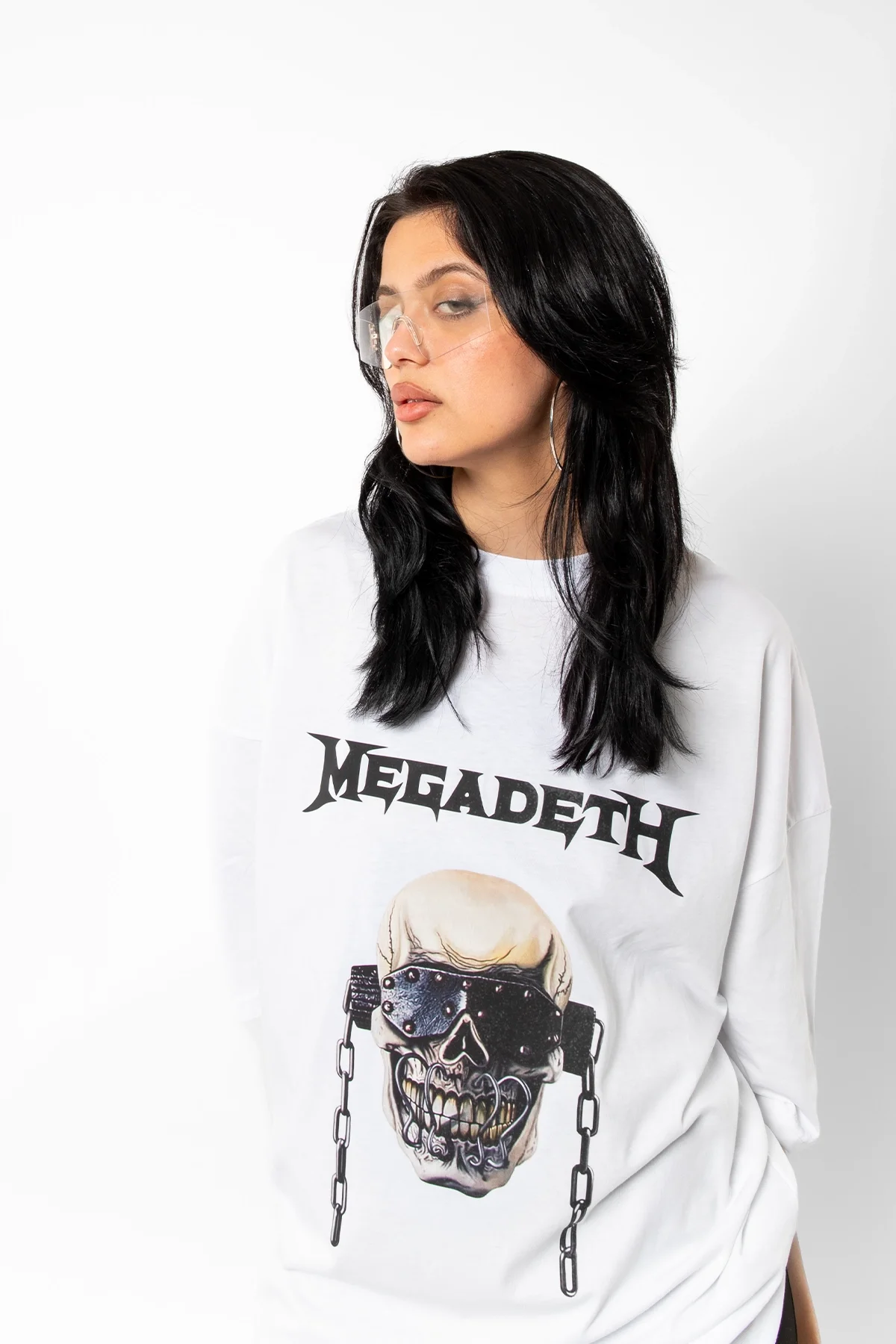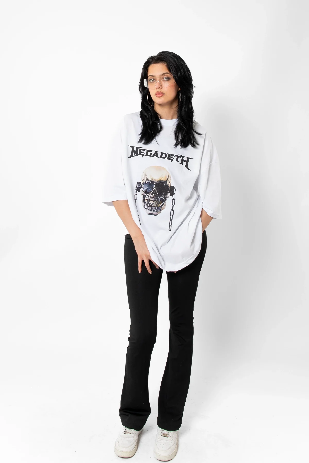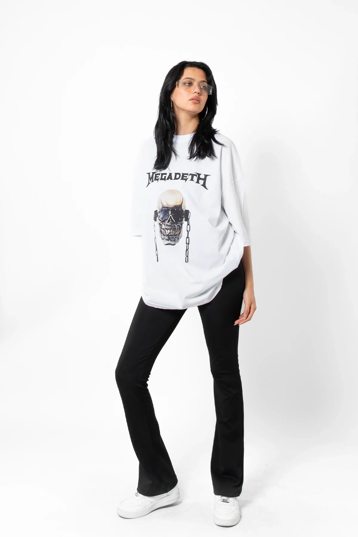 MEGADETH BASKILI BEYAZ UNİSEX OVERSİZE TSHİRT