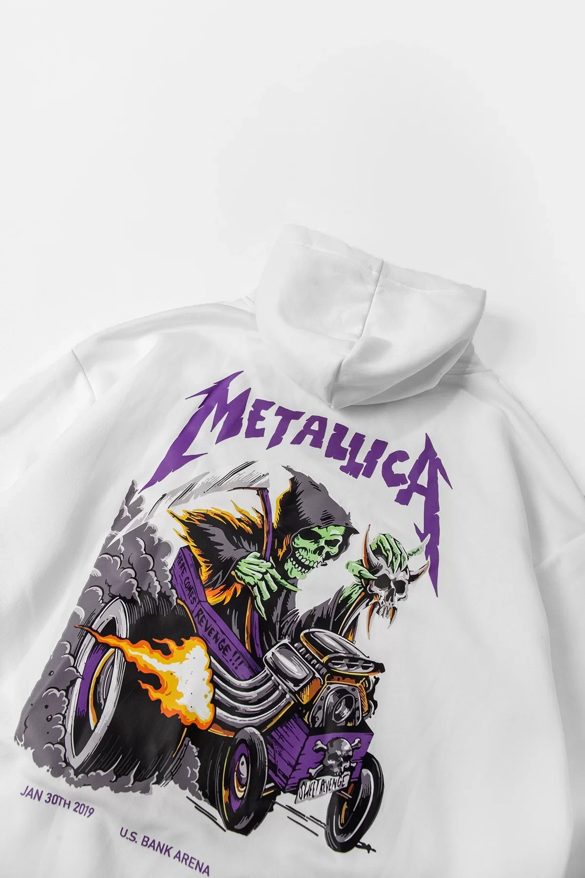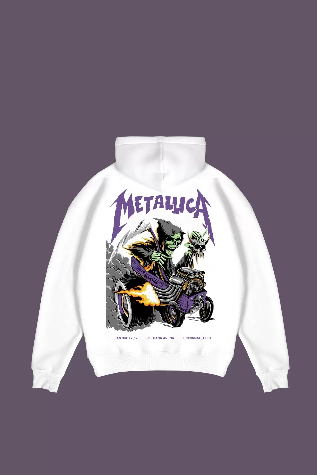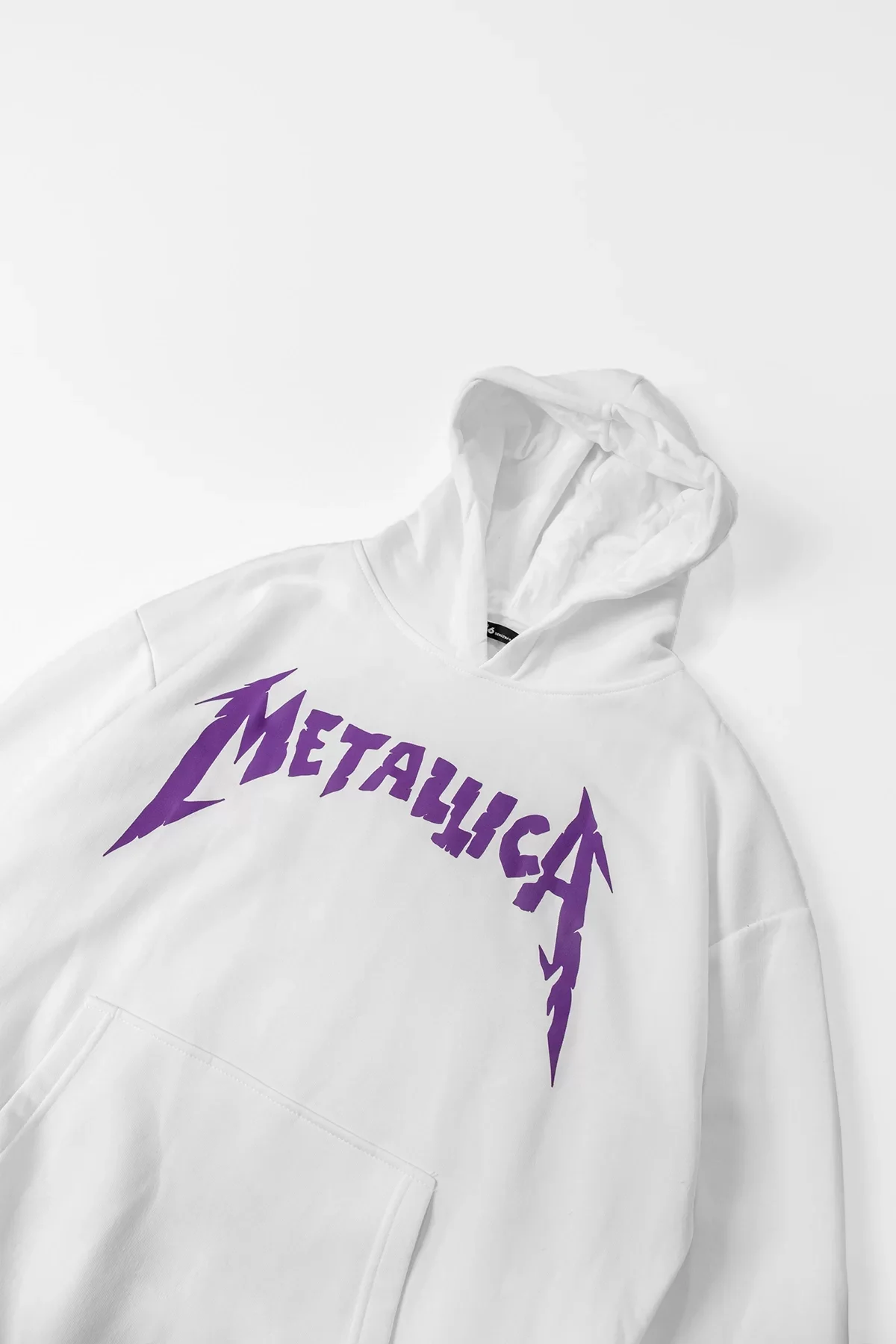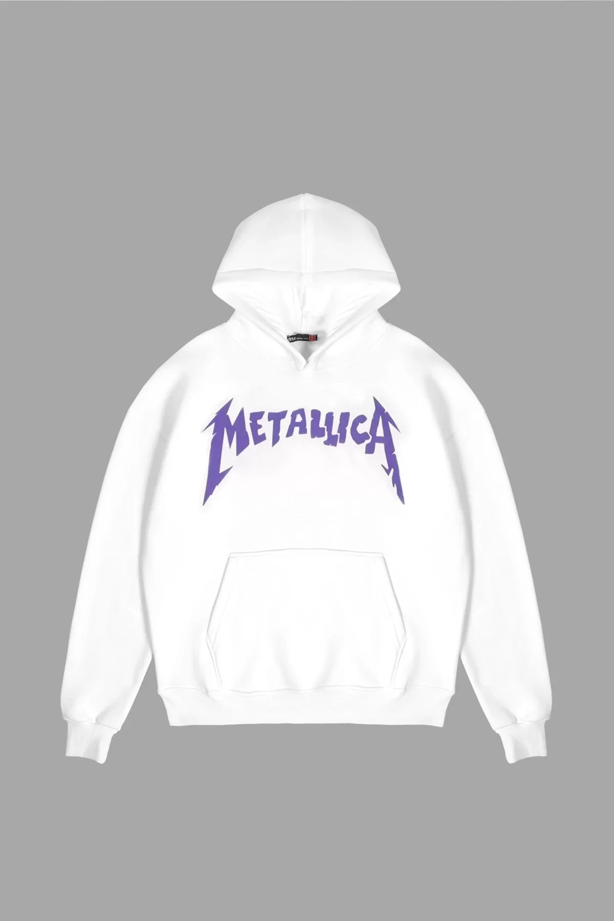 METALLİCA MOR SIRT BASKILI BEYAZ OVERSİZE KAPÜŞONLU SWEATSHİRT