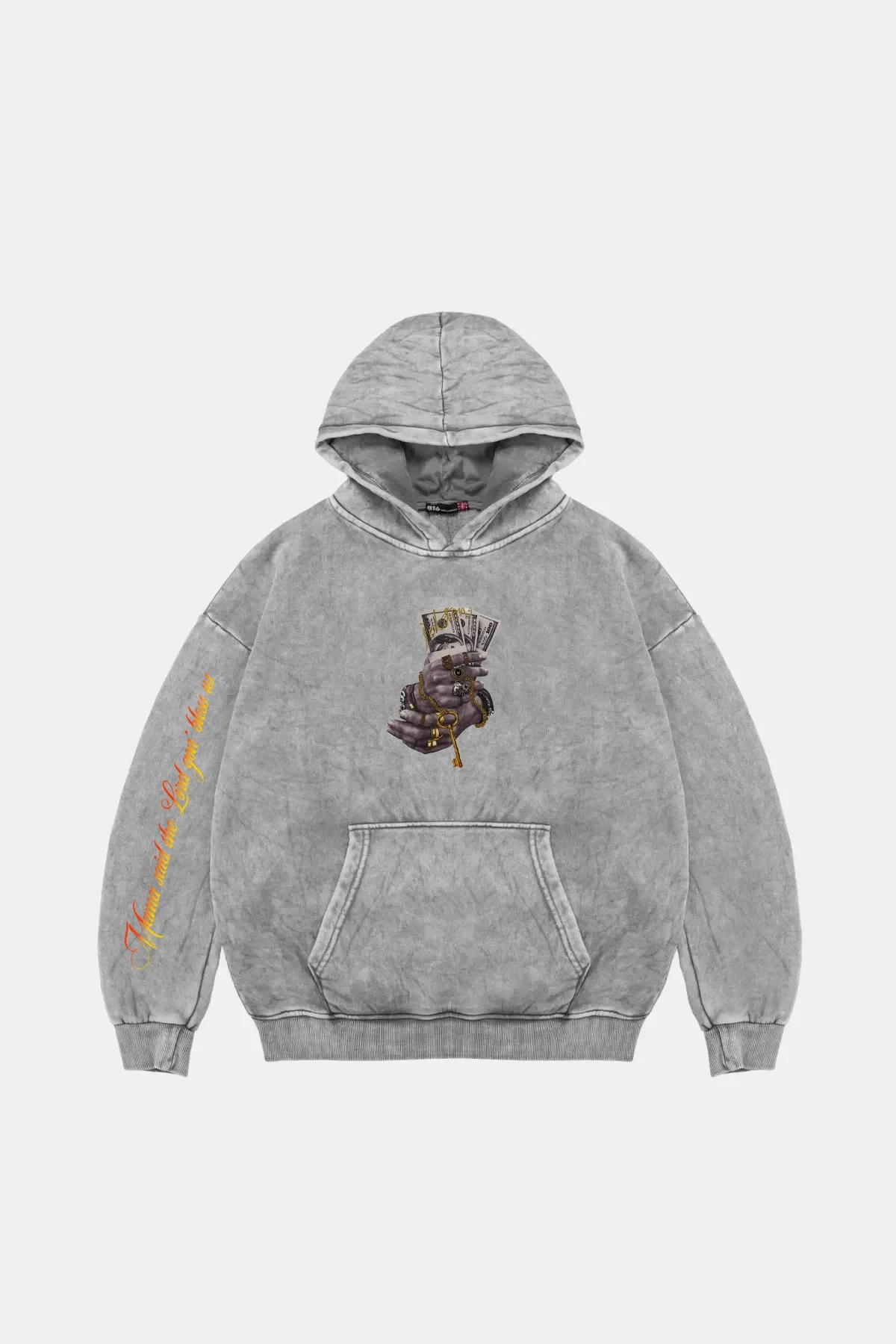 MONEY HAND BASKILI OVERSİZE UNİSEX PREMİUM YIKAMALI BEYAZ HOODİE