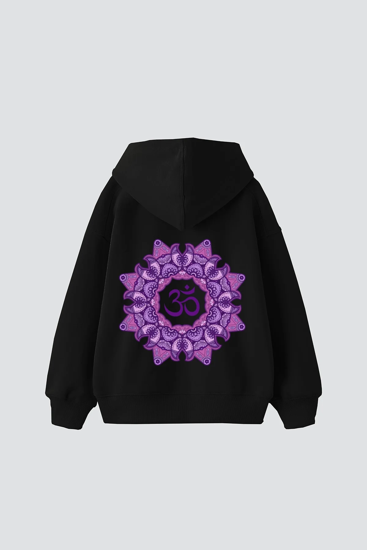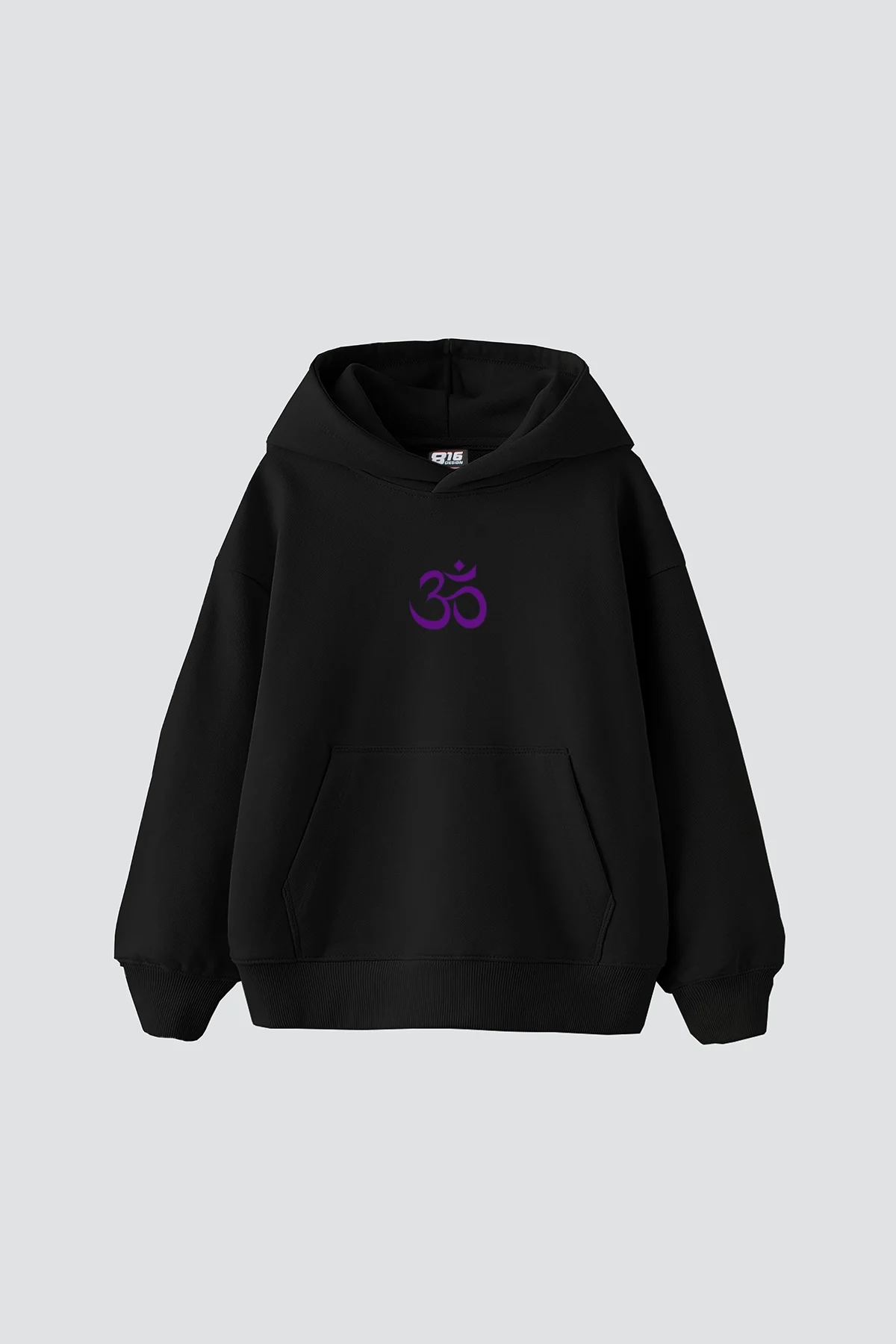 OM BASKILI UNİSEX OVERSİZE SİYAH HOODİE