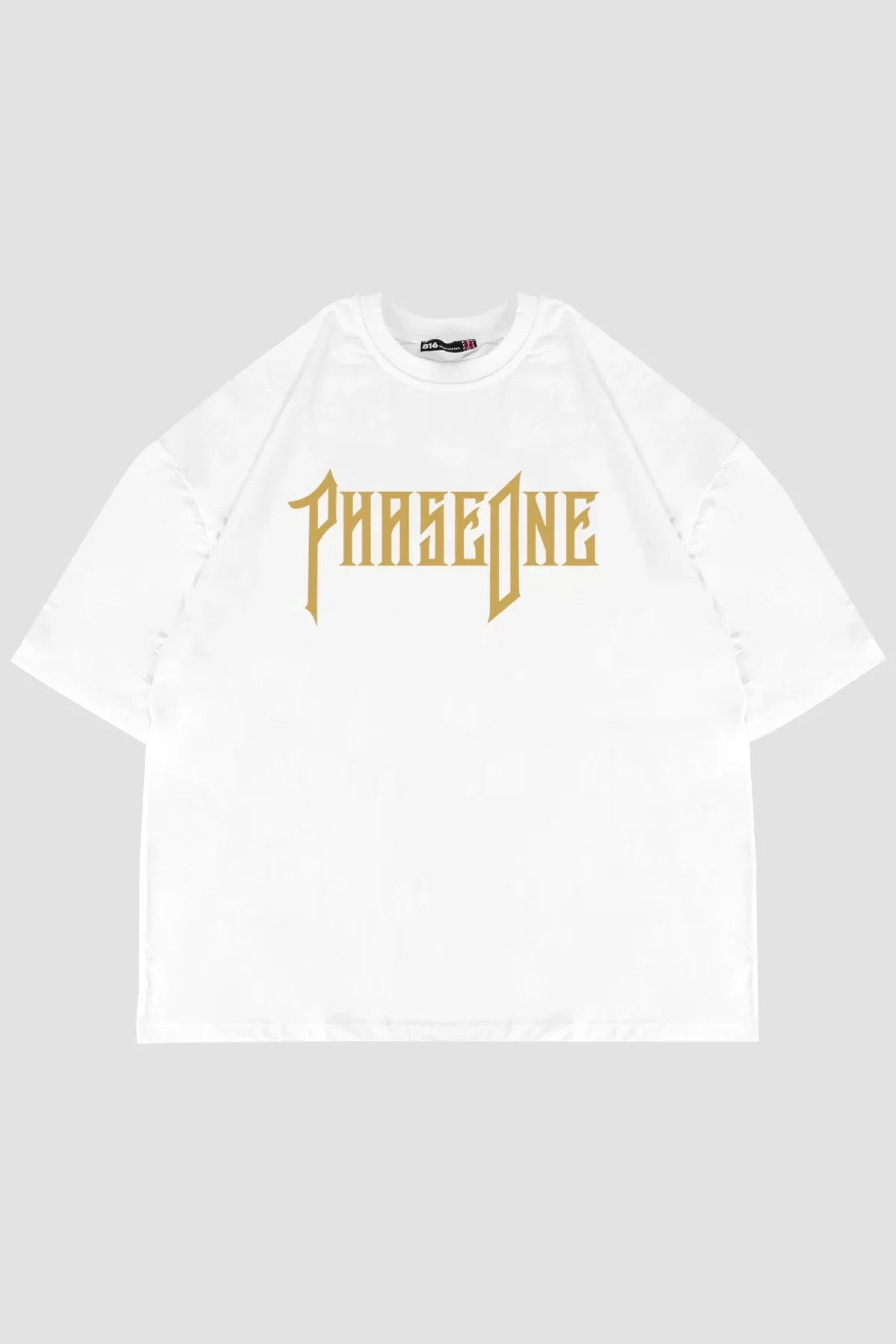PHASEONE SIRT BASKILI BEYAZ UNİSEX OVERSİZE TSHİRT