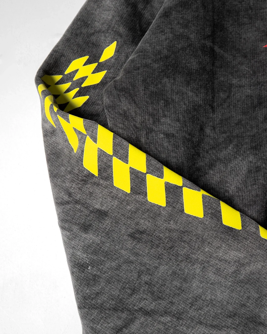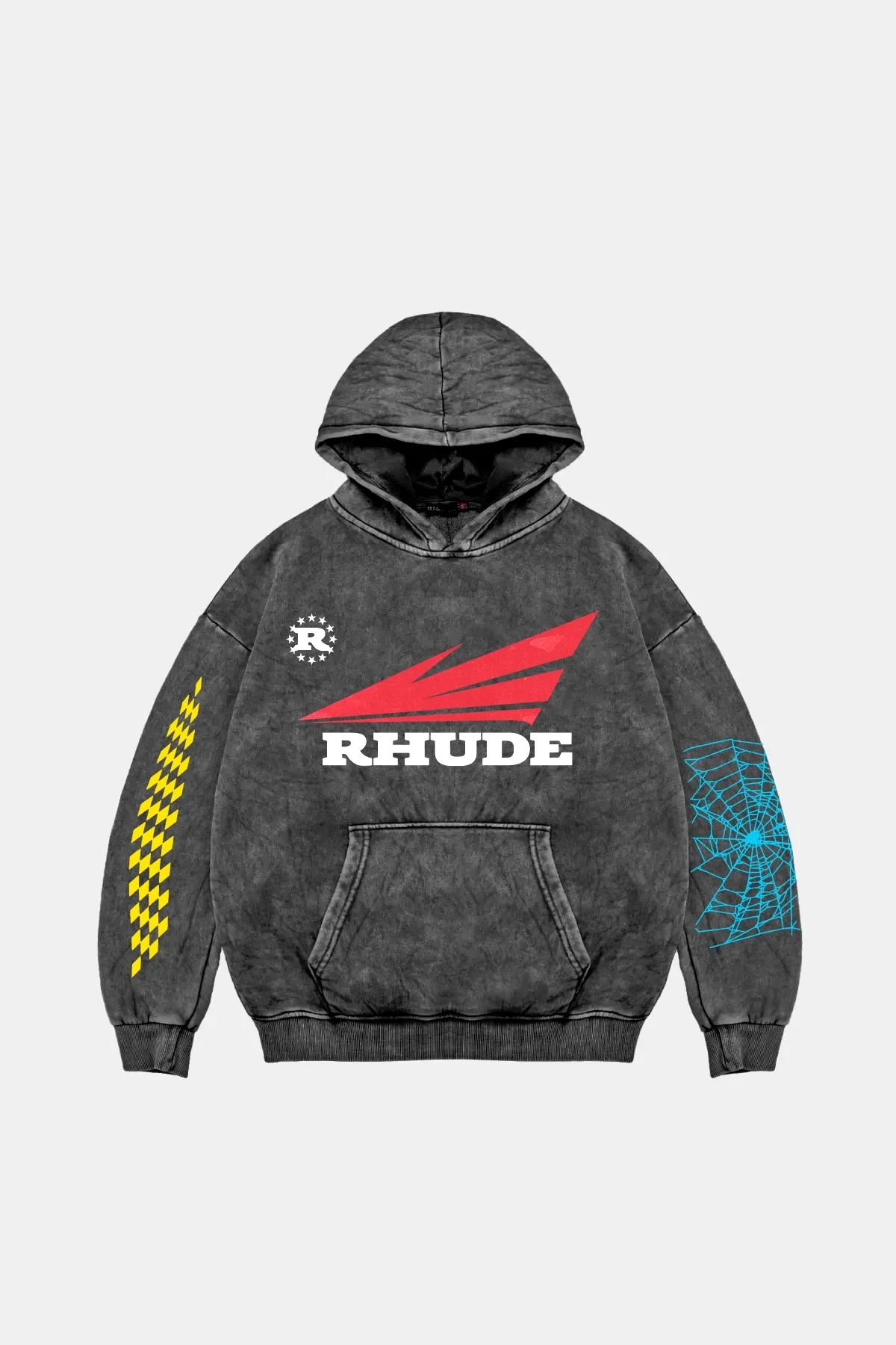 RHUDE BASKILI OVERSİZE UNİSEX YIKAMALI SİYAH HOODİE