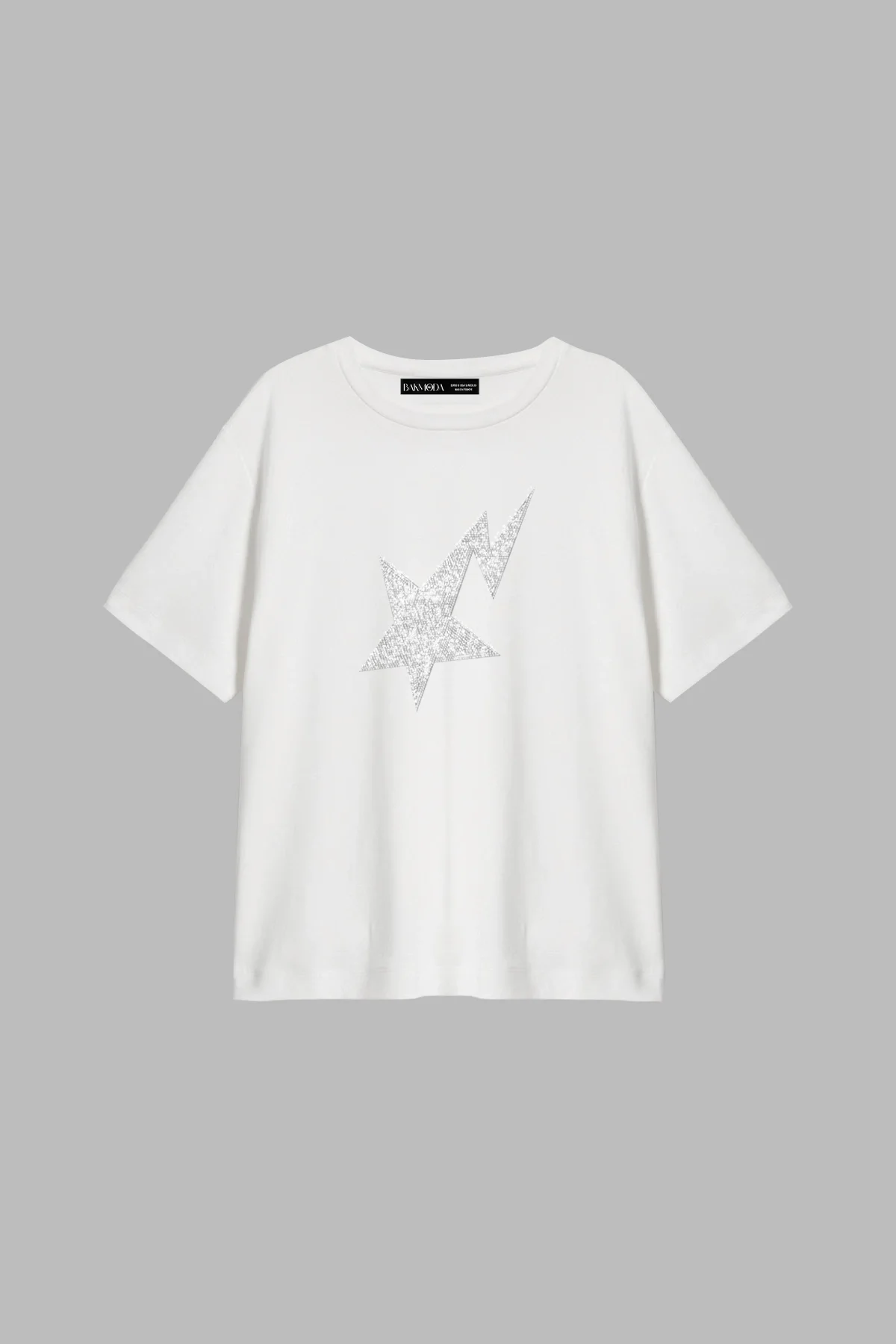 SHİNİNG STAR RELAXED FİT BEYAZ KADIN TSHİRT