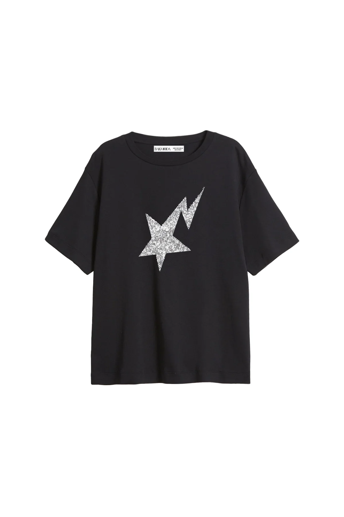 SHİNİNG STAR RELAXED FİT SİYAH KADIN TSHİRT