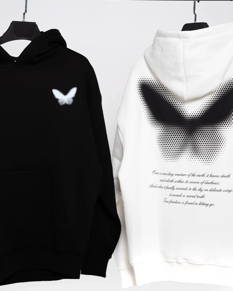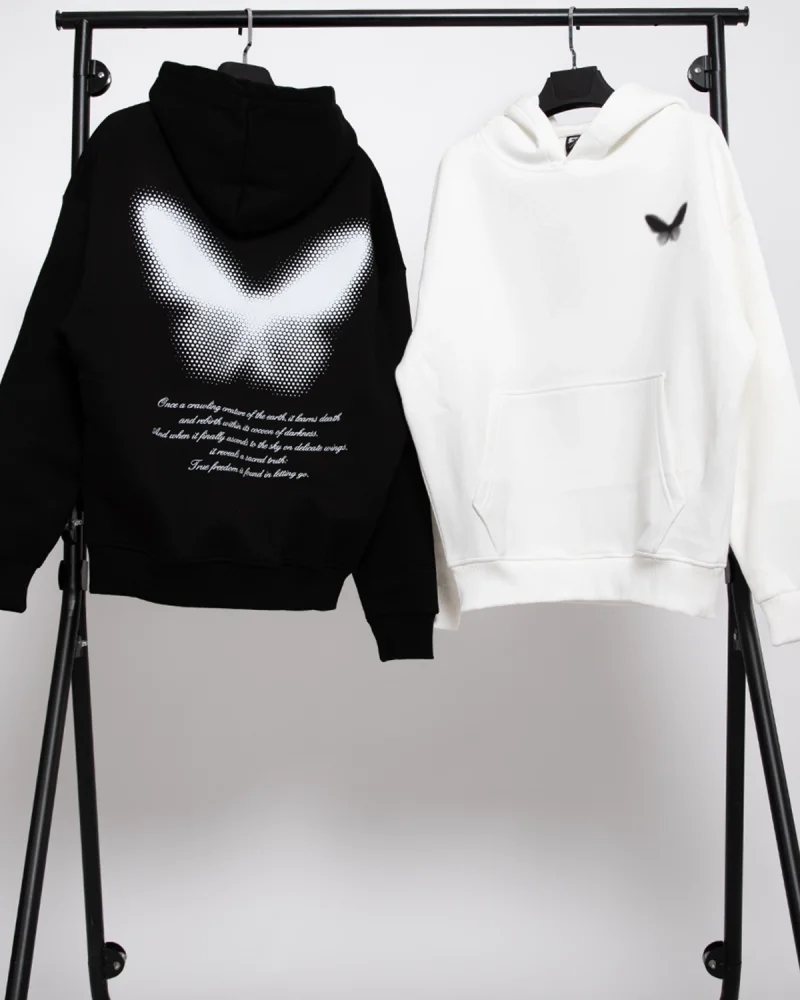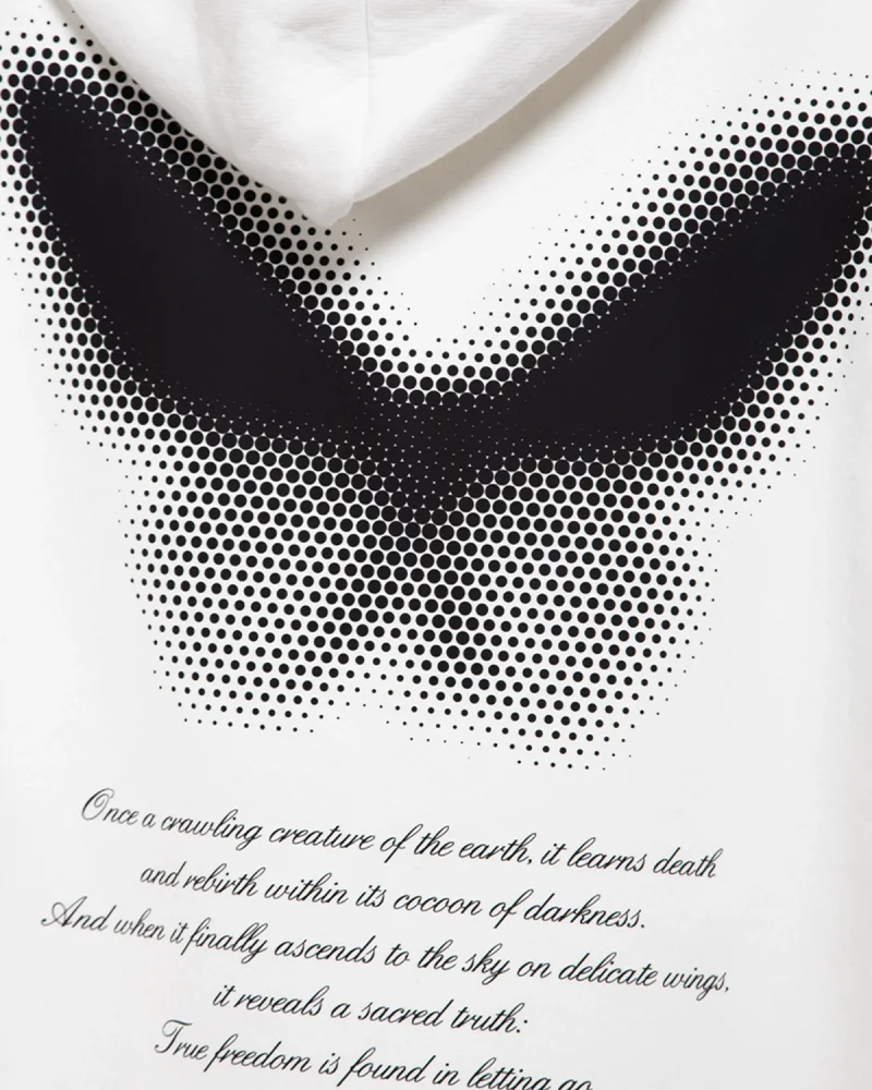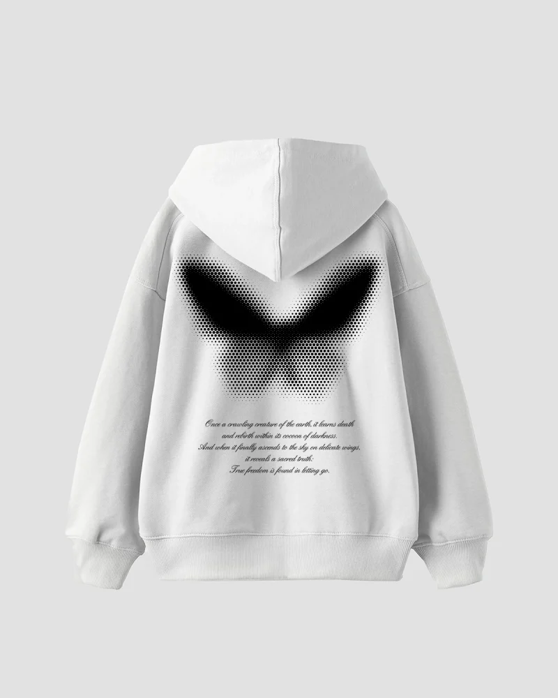 Dot Butterfly Baskılı Oversize Unisex Beyaz Hoodie