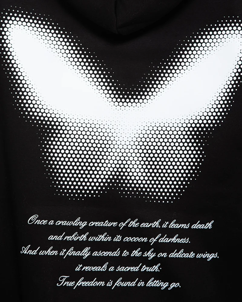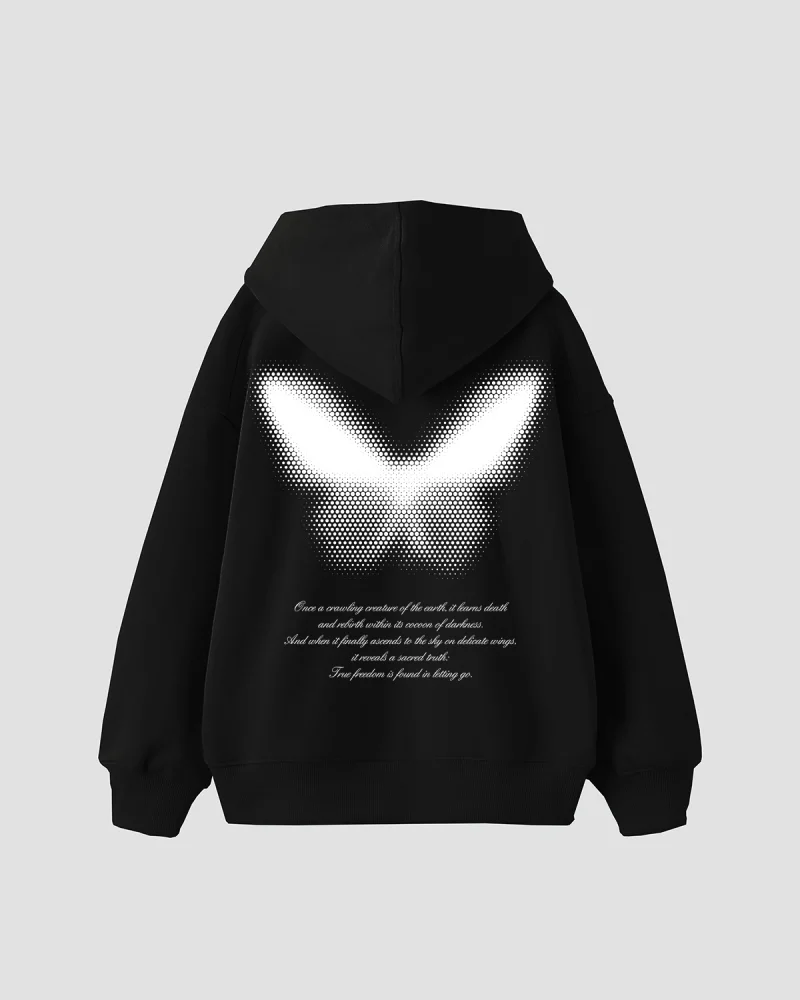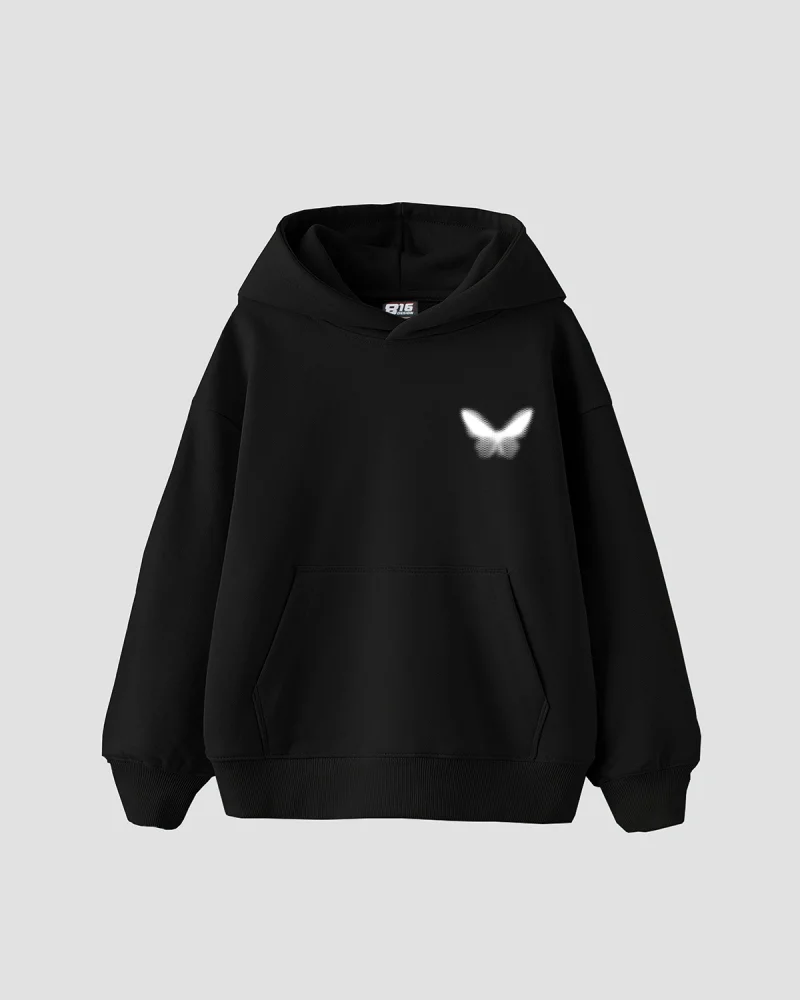 Dot Butterfly Baskılı Oversize Unisex Siyah Hoodie