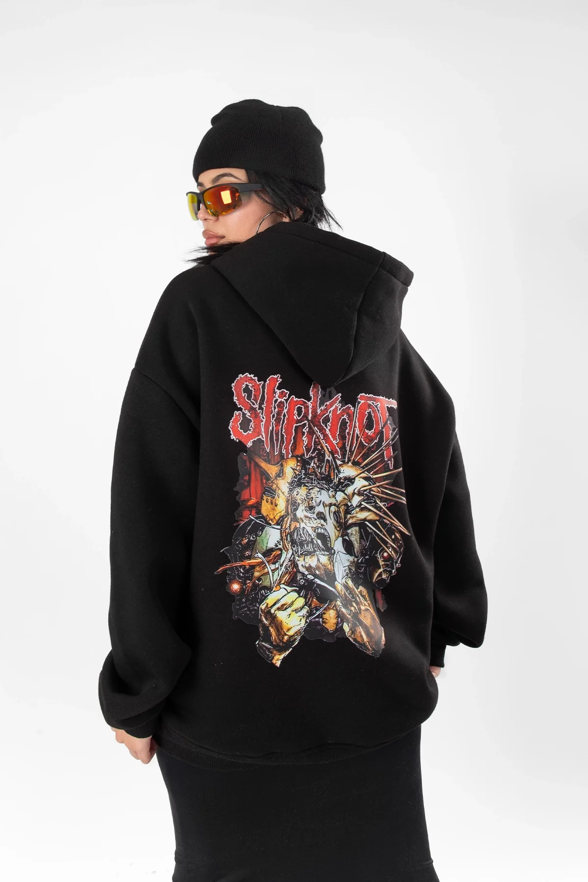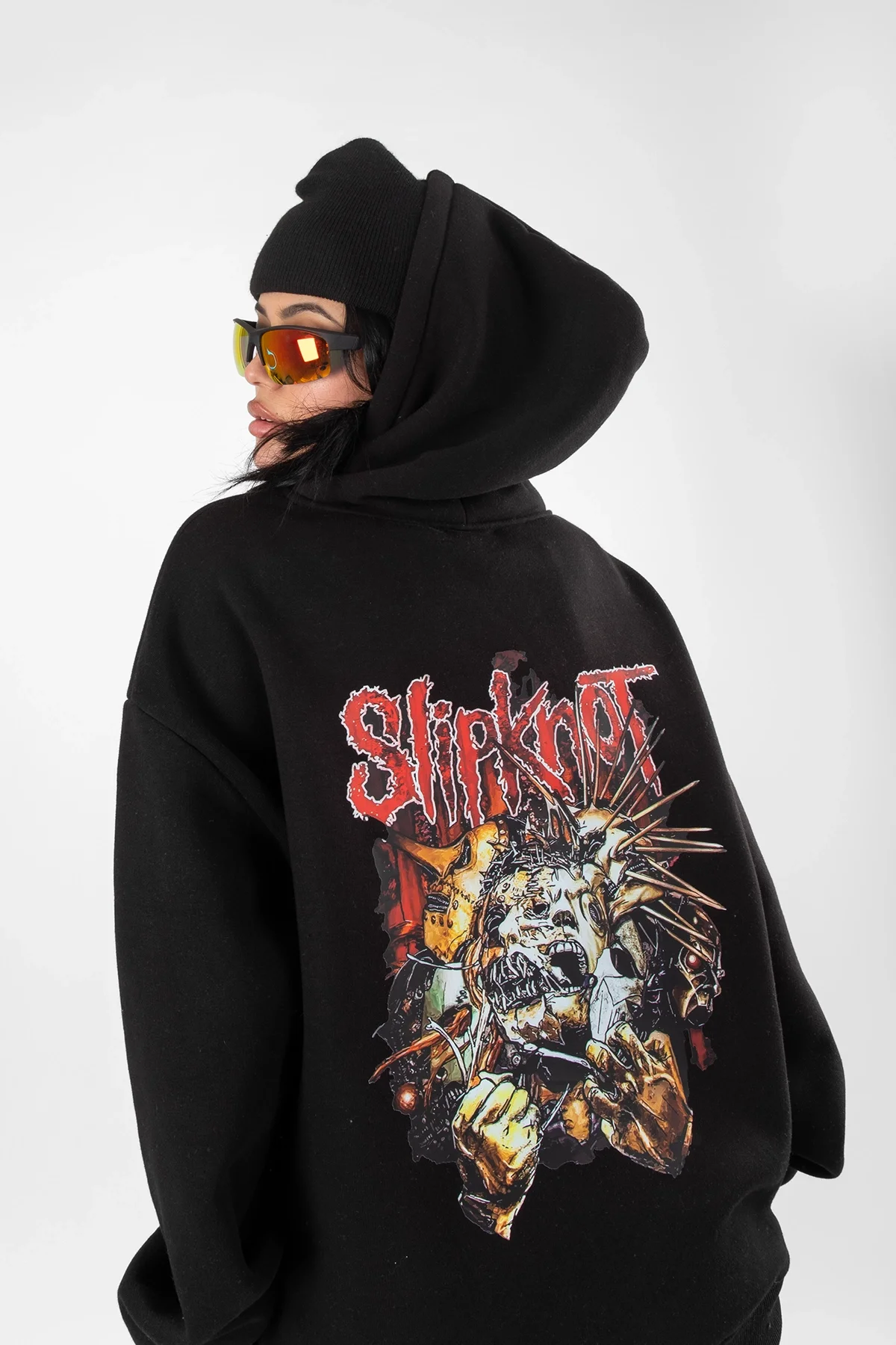 SLİPKNOT SIRT BASKILI SİYAH OVERSİZE UNİSEX HOODİE