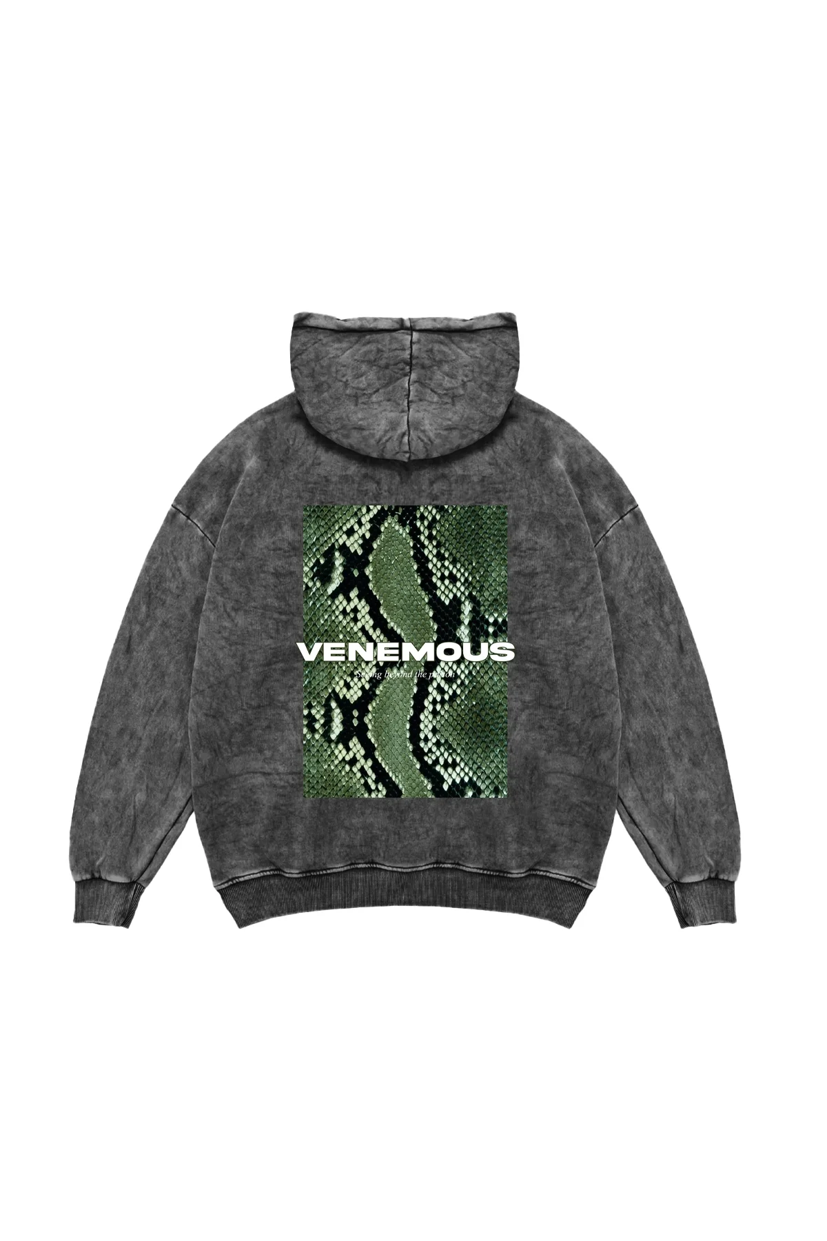 SNAKE VENEMOUS BASKILI OVERSİZE UNİSEX PREMİUM YIKAMALI SİYAH HOODİE