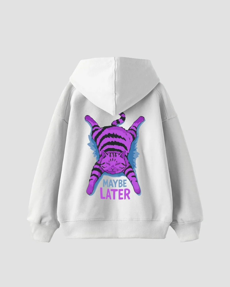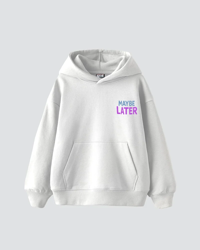 Maybe Later Baskılı Oversize Unisex Beyaz Hoodie