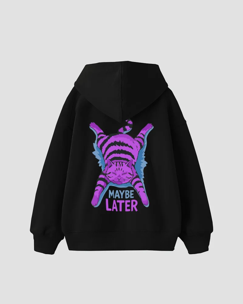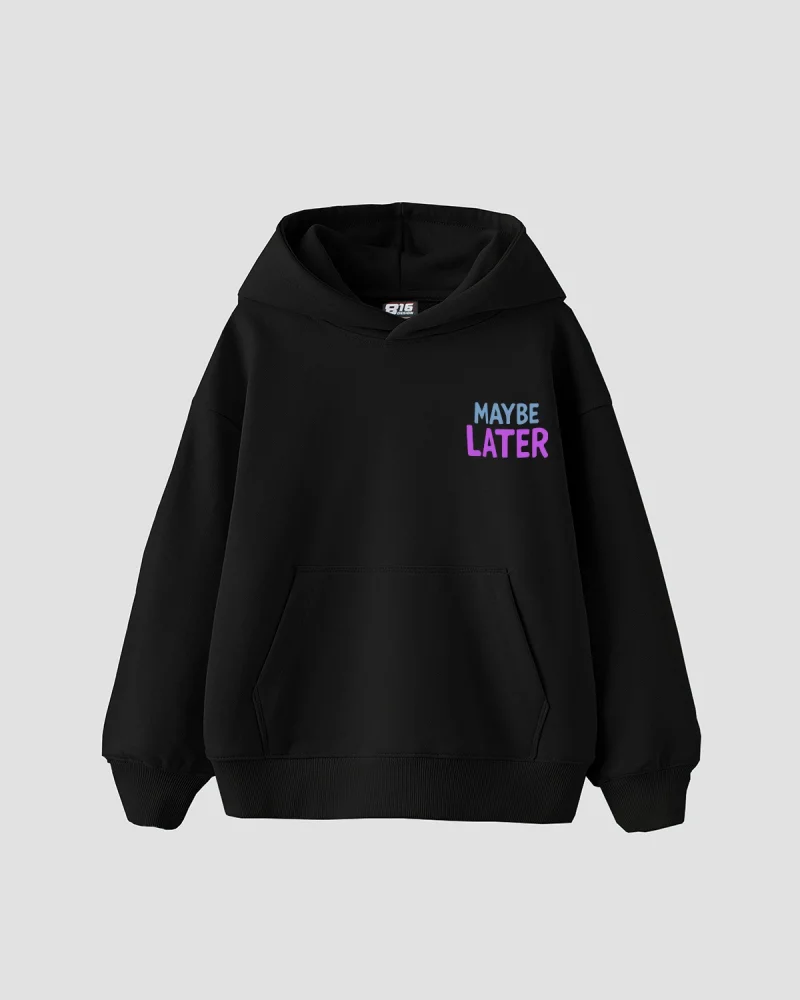 Maybe Later Baskılı Oversize Unisex Siyah Hoodie