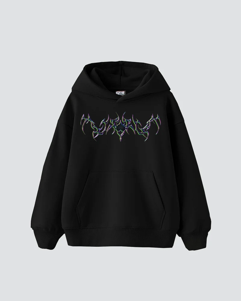 Forget Hologram Baskılı Oversize Unisex Premium Yıkamalı Siyah Hoodie
