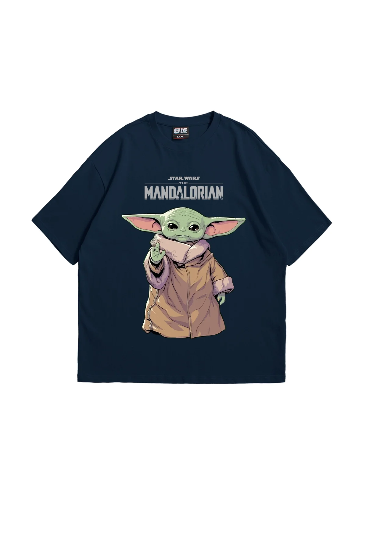 THE MANDALORİAN YODA BASKILI 24/1 OVERSİZE UNİSEX LACİVERT TSHİRT