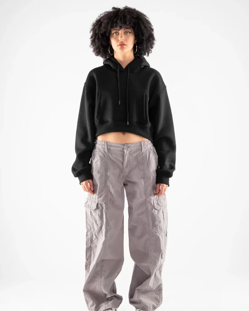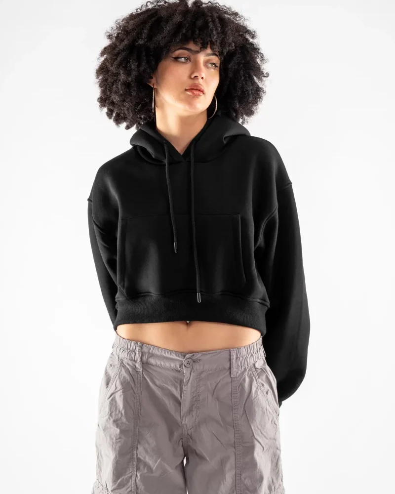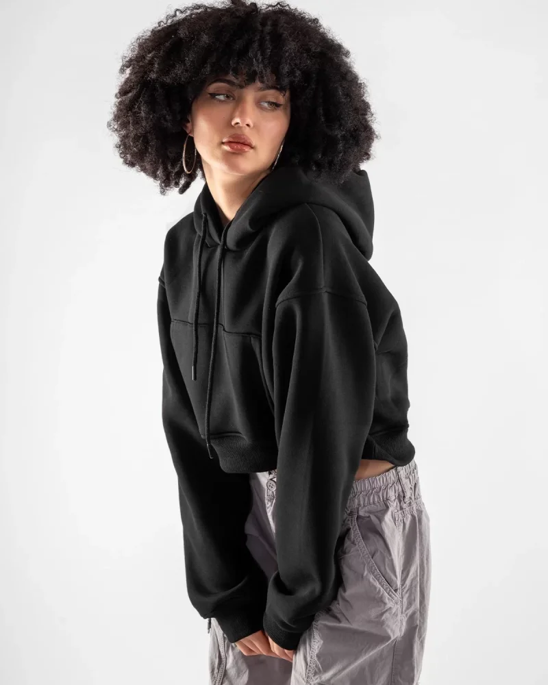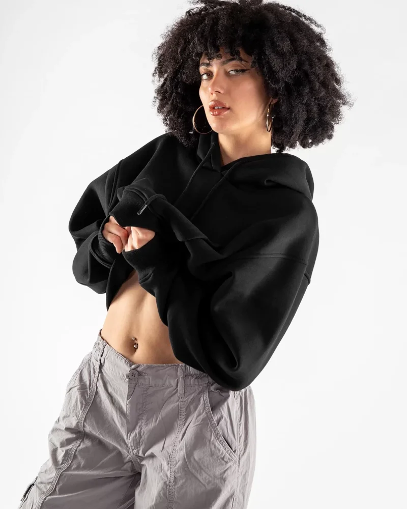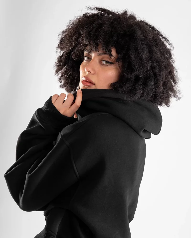 Kapüşonlu Basic Kemer Boy Oversize Kadın Siyah Sweatshirt