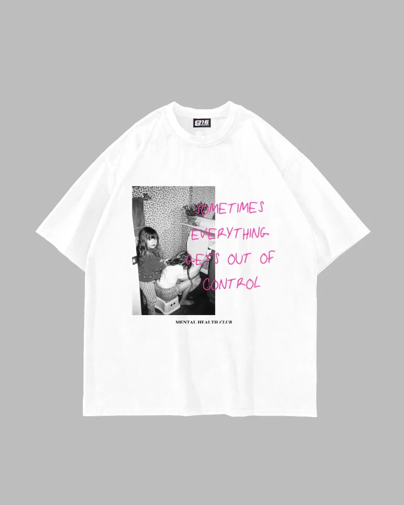 Gets Out Of Control Vintage Baskılı Oversize Unisex Beyaz Tshirt