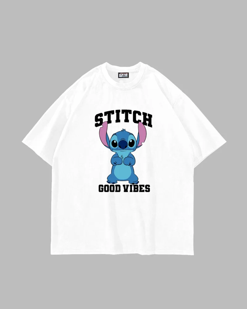 Stıtch Good Vibes Baskılı Oversize Unisex Beyaz Tshirt