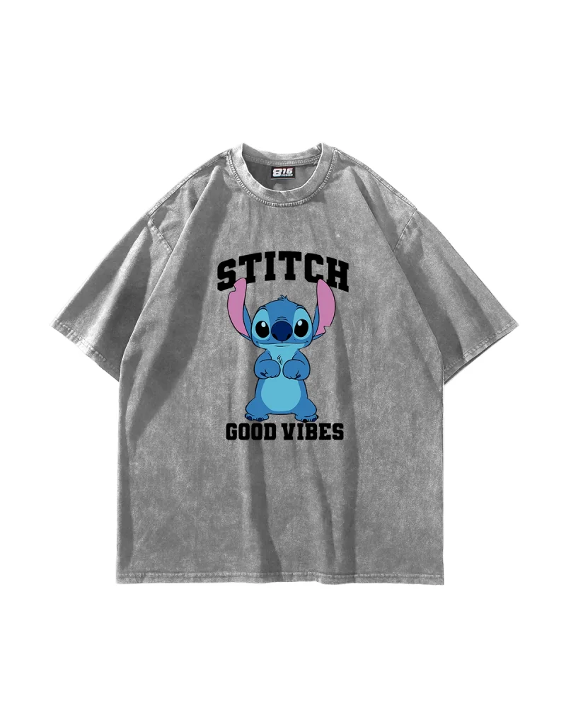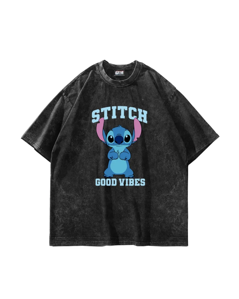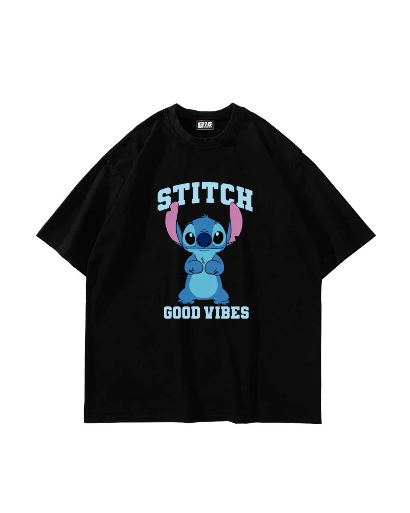 Stıtch Good Vibes Baskılı Oversize Unisex Yıkamalı Siyah Tshirt