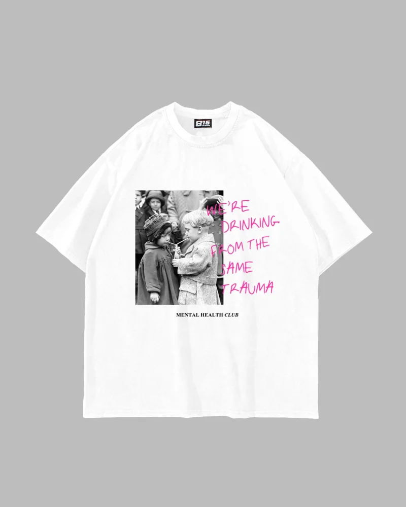 Trauma Vintage Baskılı Oversize Unisex Beyaz Tshirt