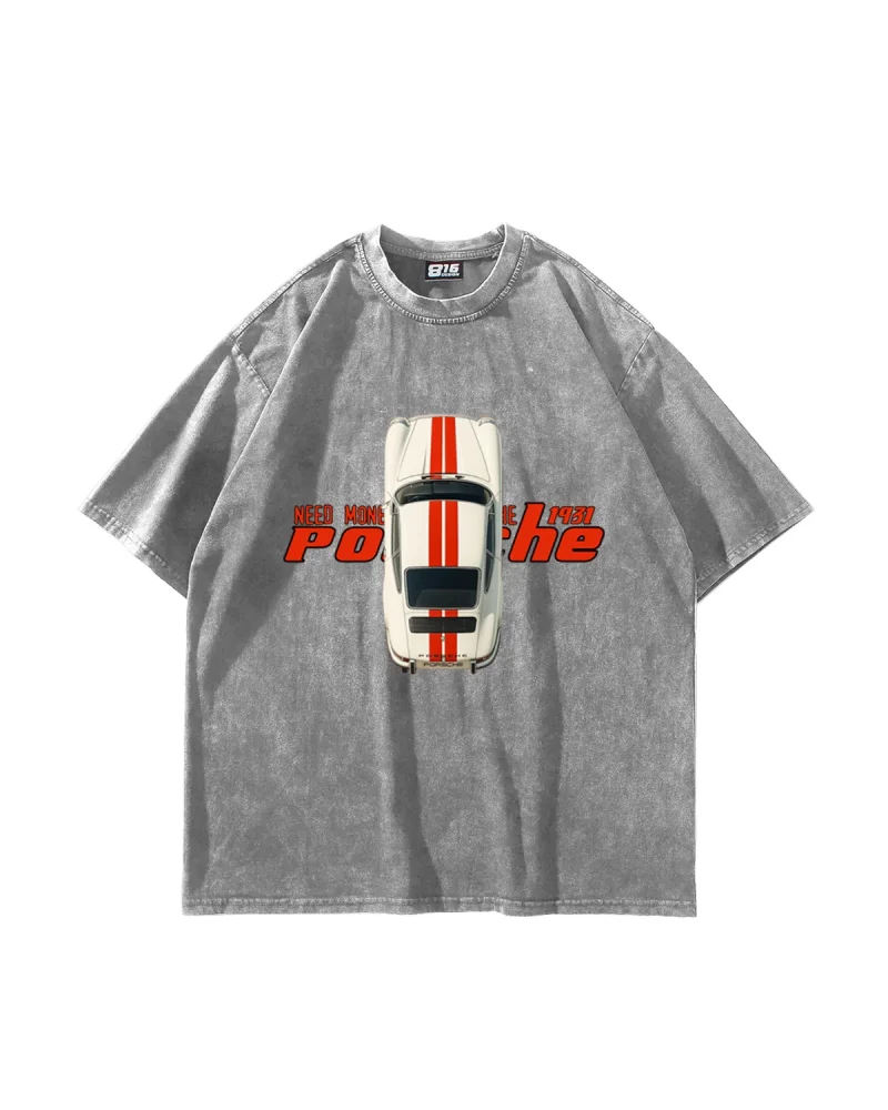 V4 Need Money For Porsche Baskılı Oversize Unisex Yıkamalı Beyaz Tshirt