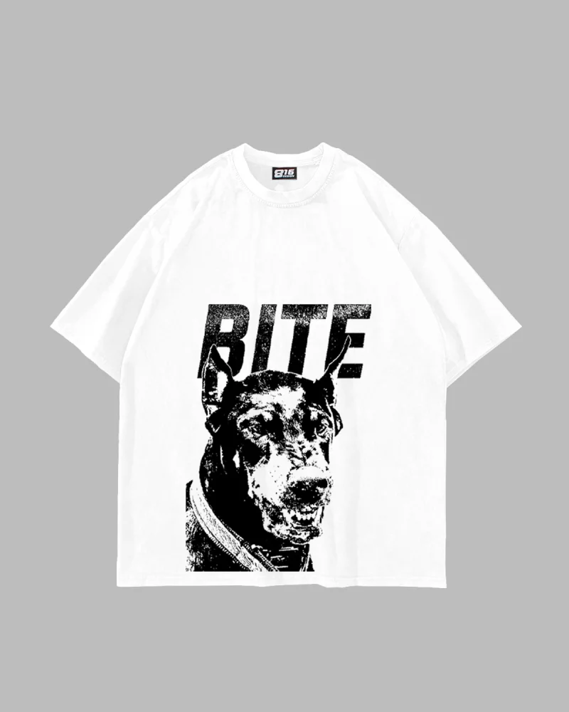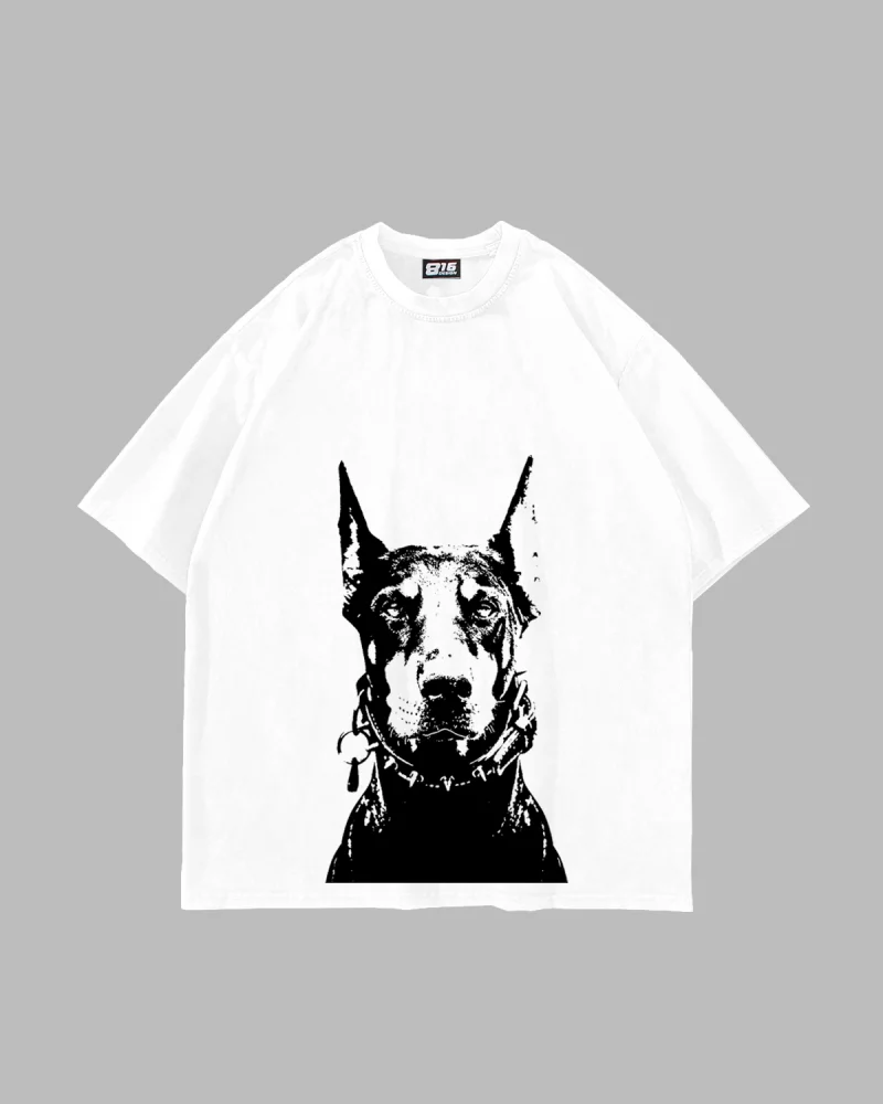 Bıte Doberman Baskılı Oversize Unisex Beyaz Tshirt