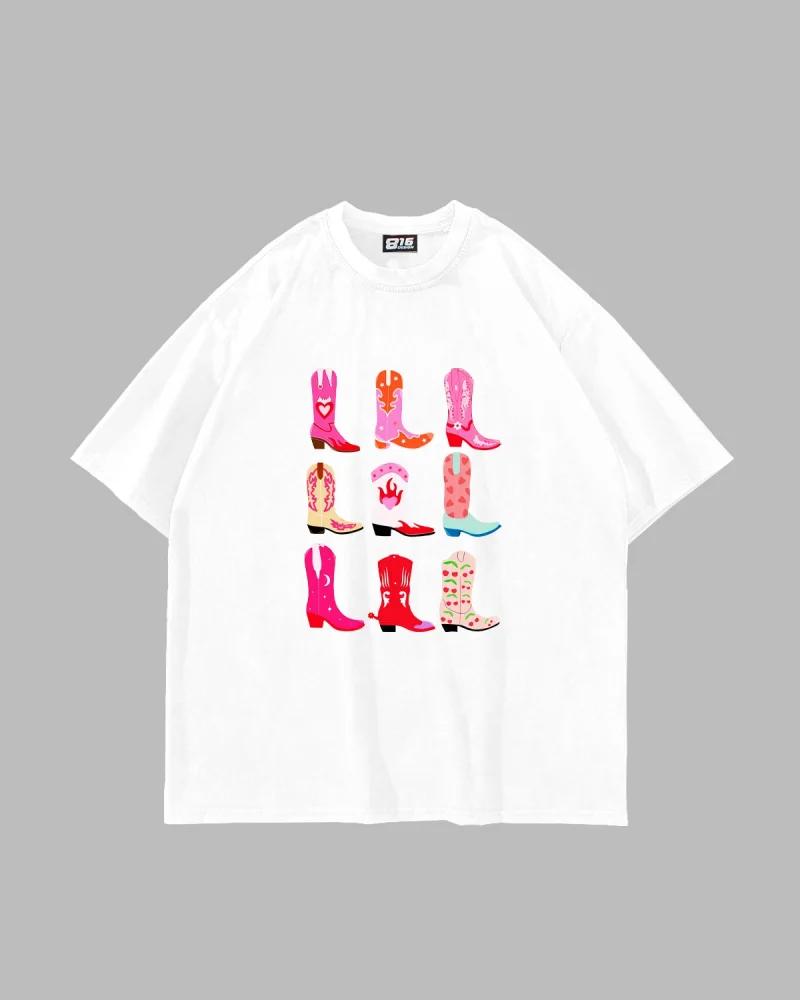 Fun Cowboy Baskılı Oversize Unisex Beyaz Tshirt