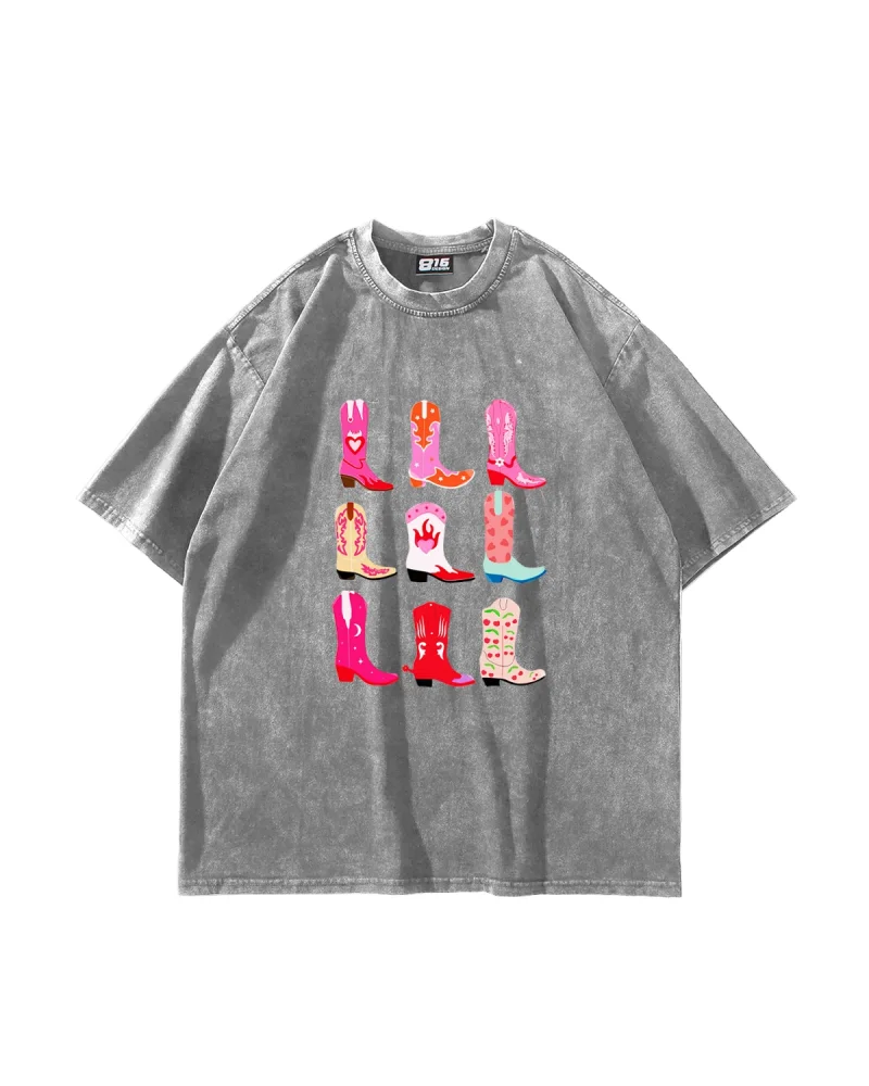 Fun Cowboy Baskılı Oversize Unisex Yıkamalı Beyaz Tshirt