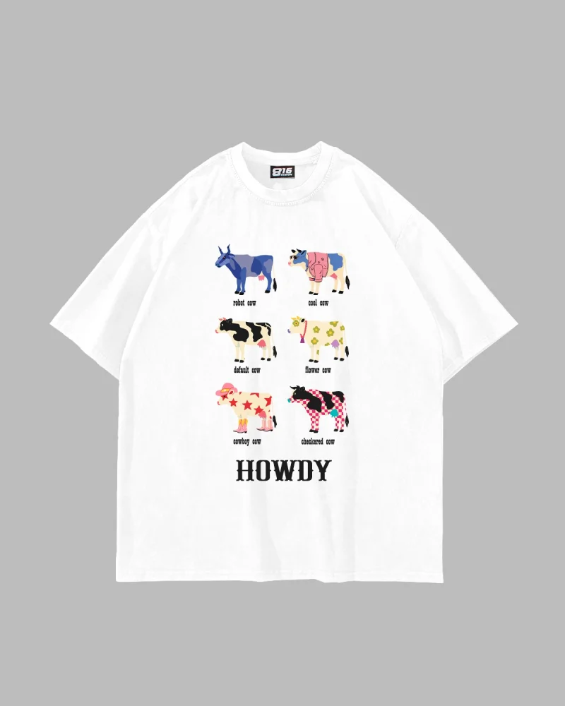 Howdy Cows Baskılı Oversize Unisex Beyaz Tshirt