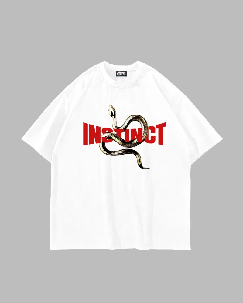 Instinct Baskılı Oversize Unisex Beyaz Tshirt