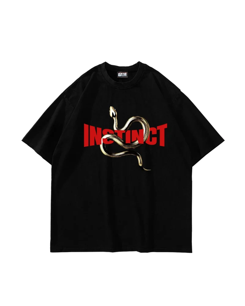 Instinct Baskılı Oversize Unisex Yıkamalı Siyah Tshirt