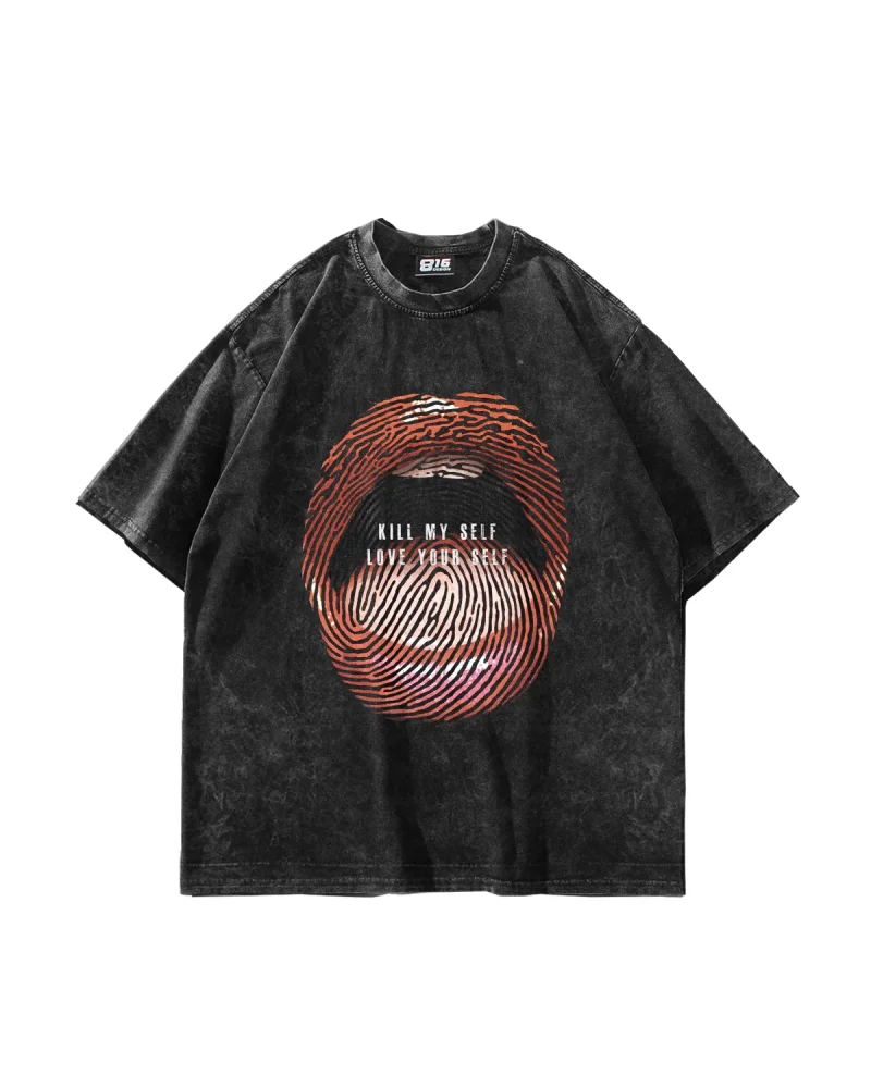Love Your Self Baskılı Oversize Unisex Yıkamalı Siyah Tshirt