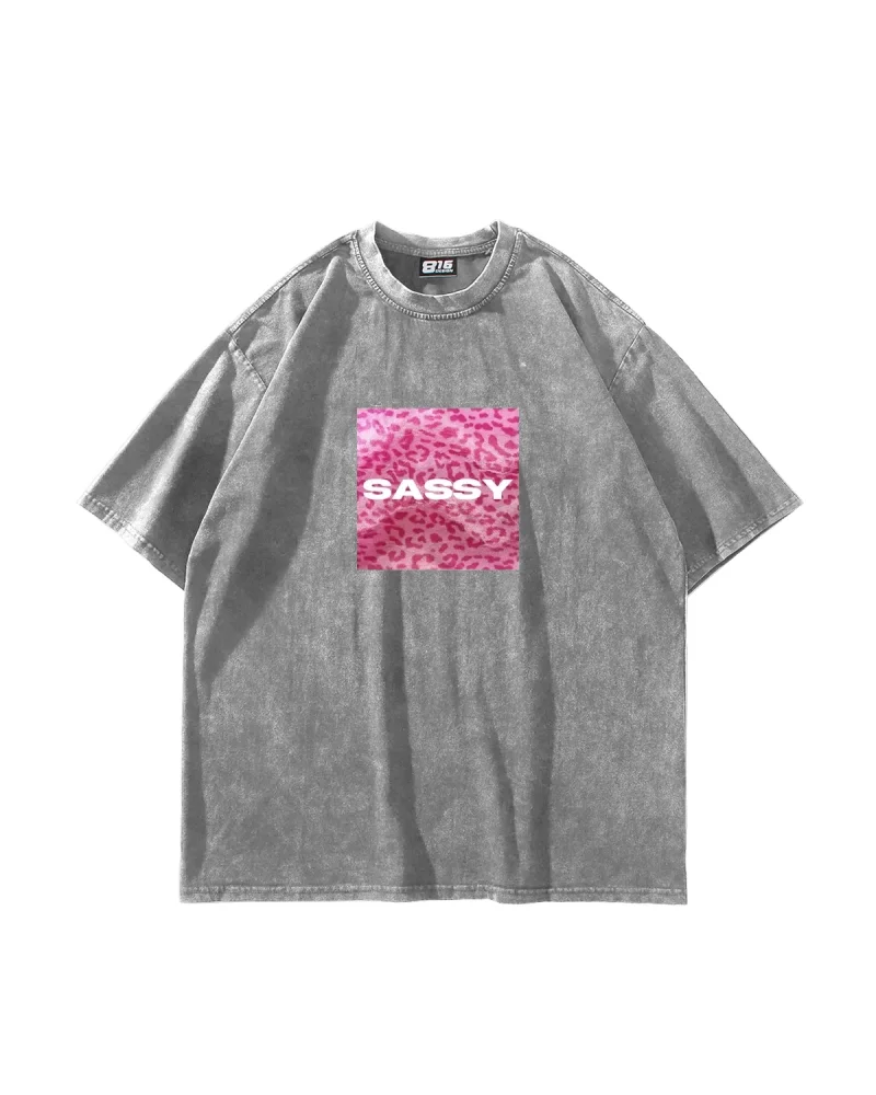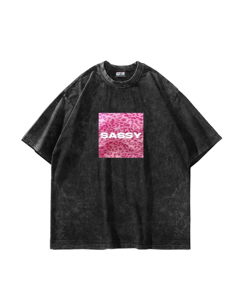 Sassy Baskılı Oversize Unisex Yıkamalı Siyah Tshirt