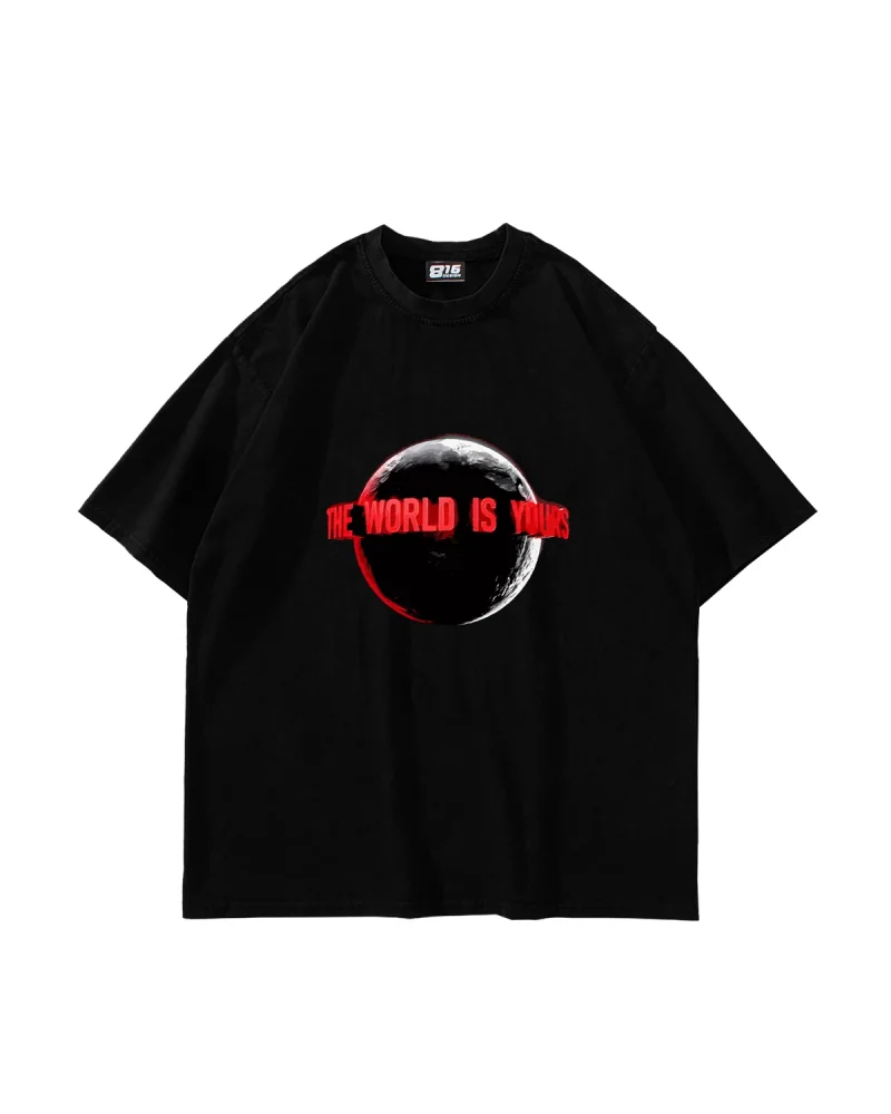 The World Is Yours V2 Baskılı Oversize Unisex Siyah Tshirt