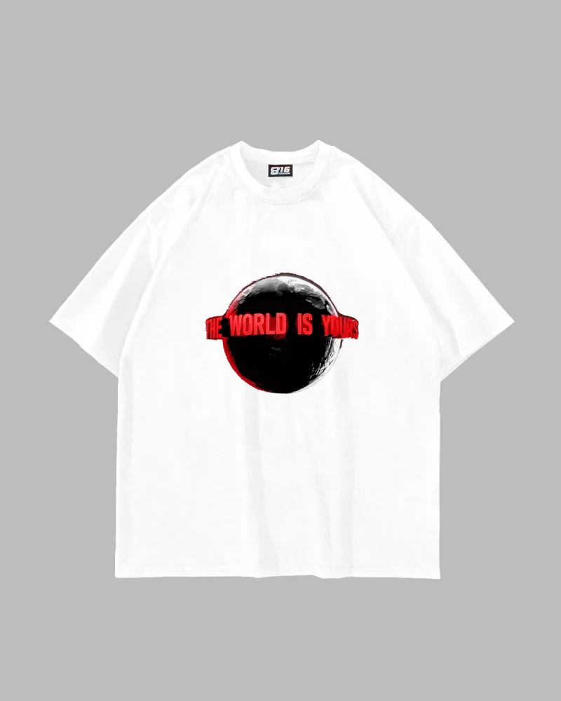 The World Is Yours V2 Baskılı Oversize Unisex Beyaz Tshirt