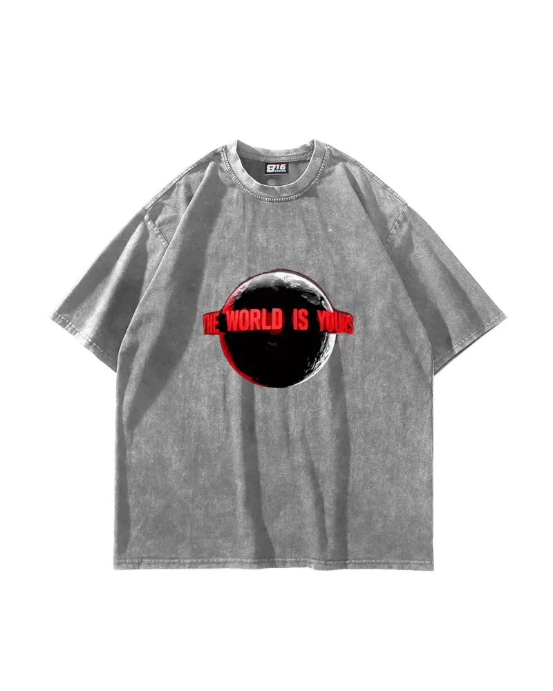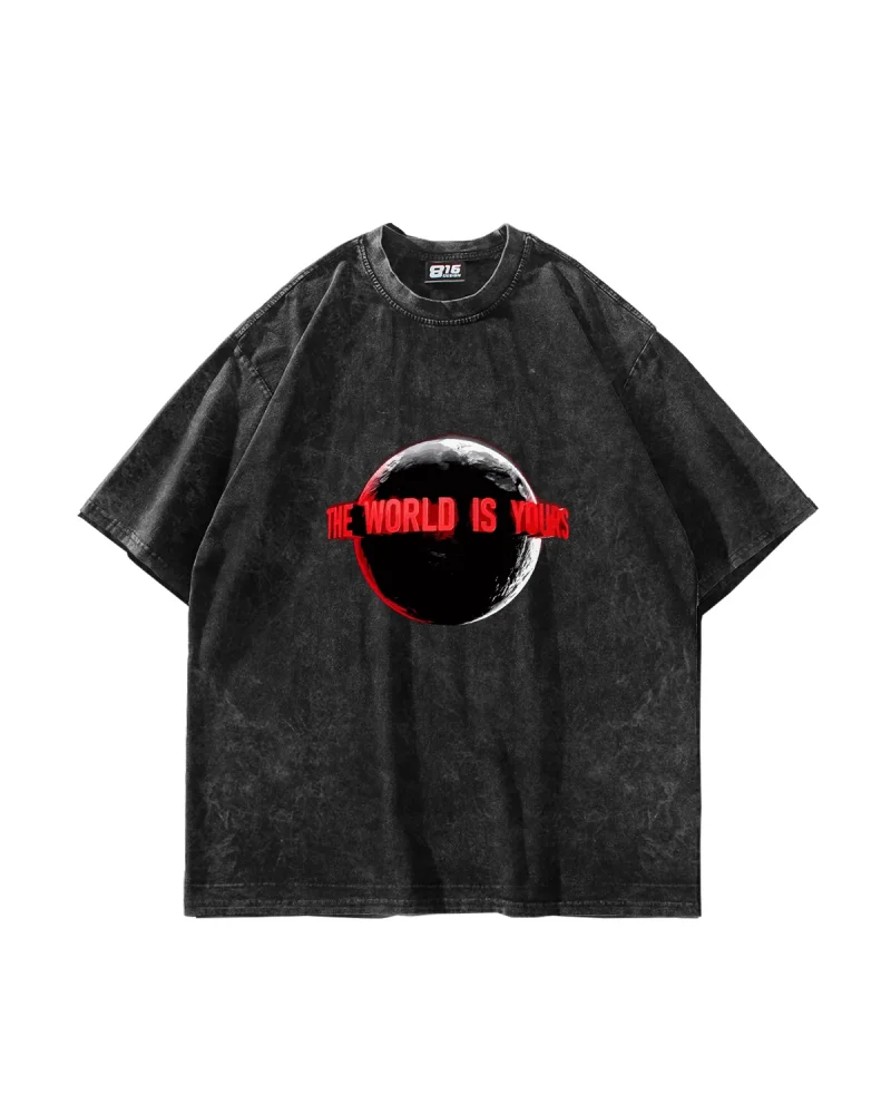 The World Is Yours V2 Baskılı Oversize Unisex Yıkamalı Siyah Tshirt
