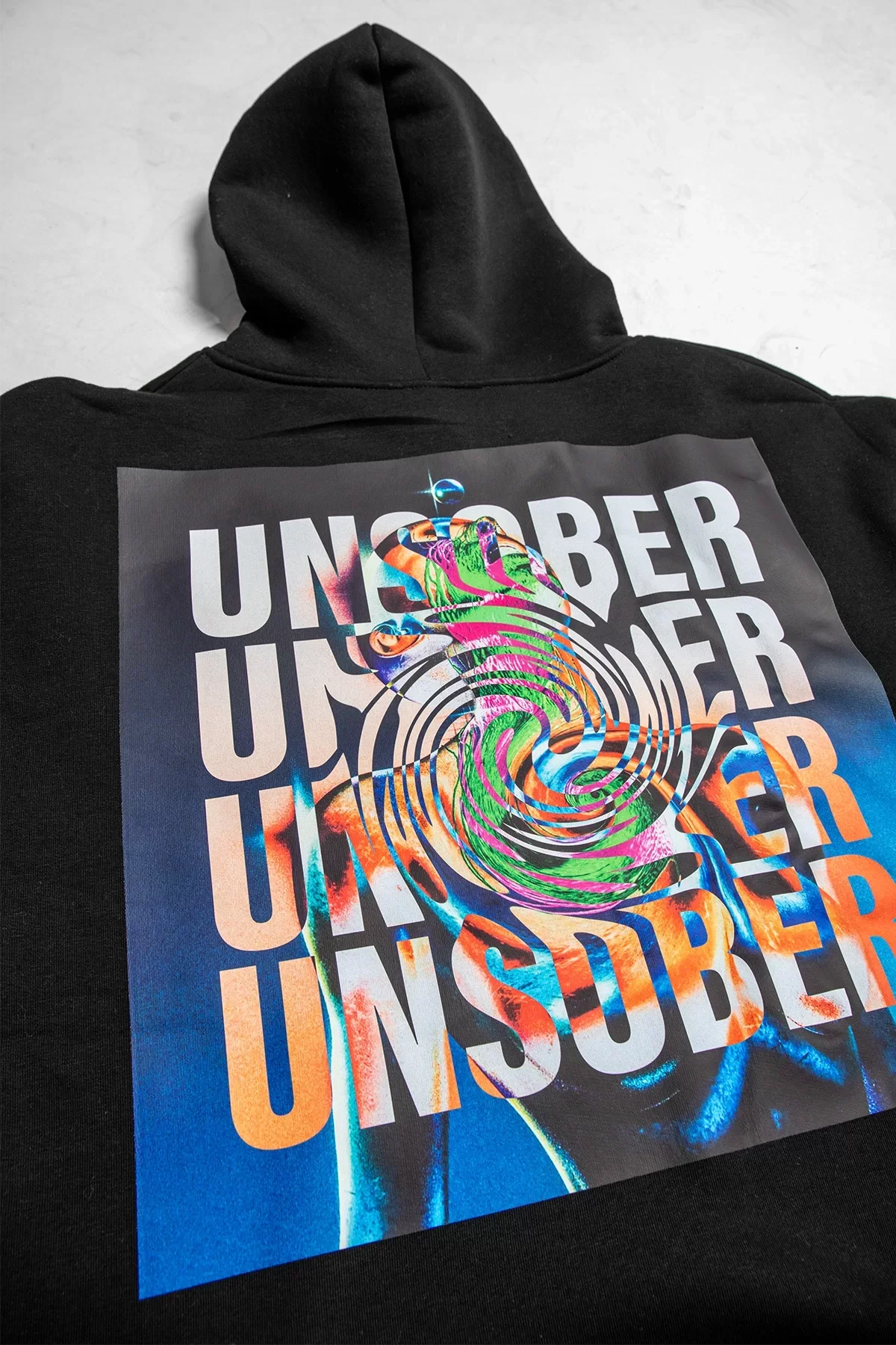 UNSOBER BASKILI OVERSİZE UNİSEX SİYAH HOODİE