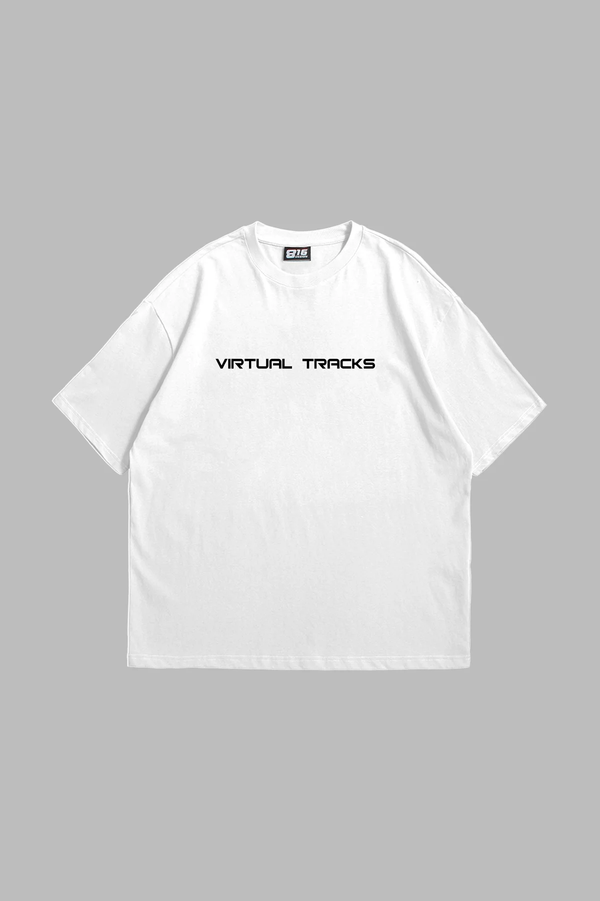 VIRTUAL TRACKS BASKILI OVERSİZE UNİSEX BEYAZ TSHİRT
