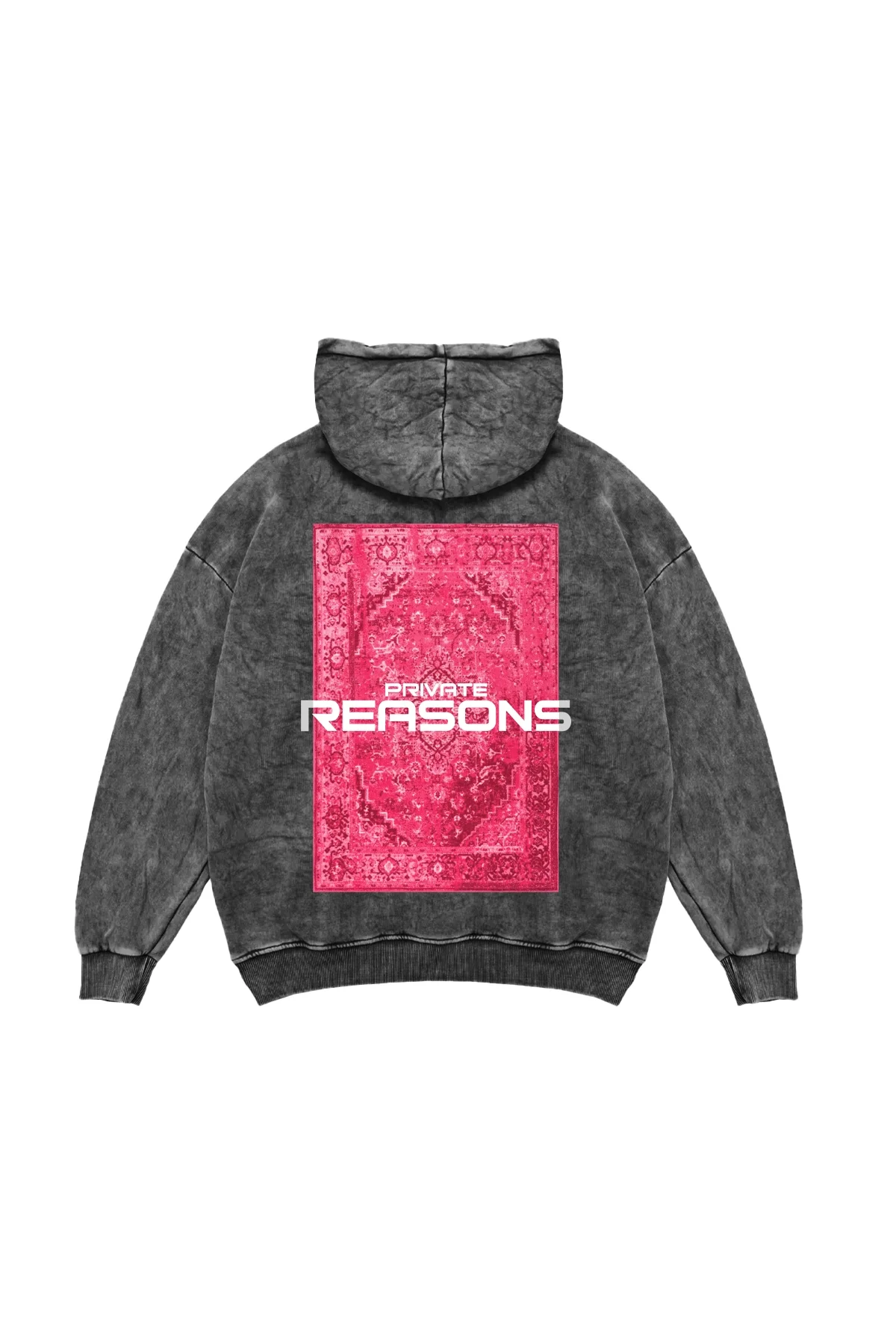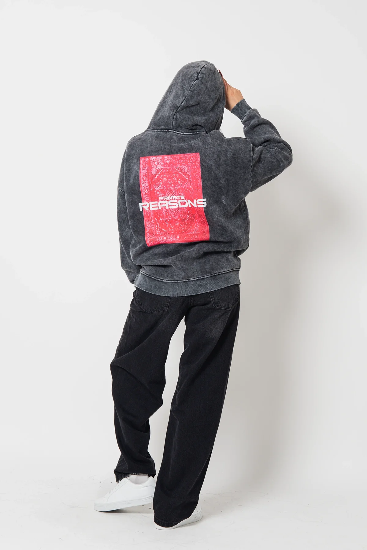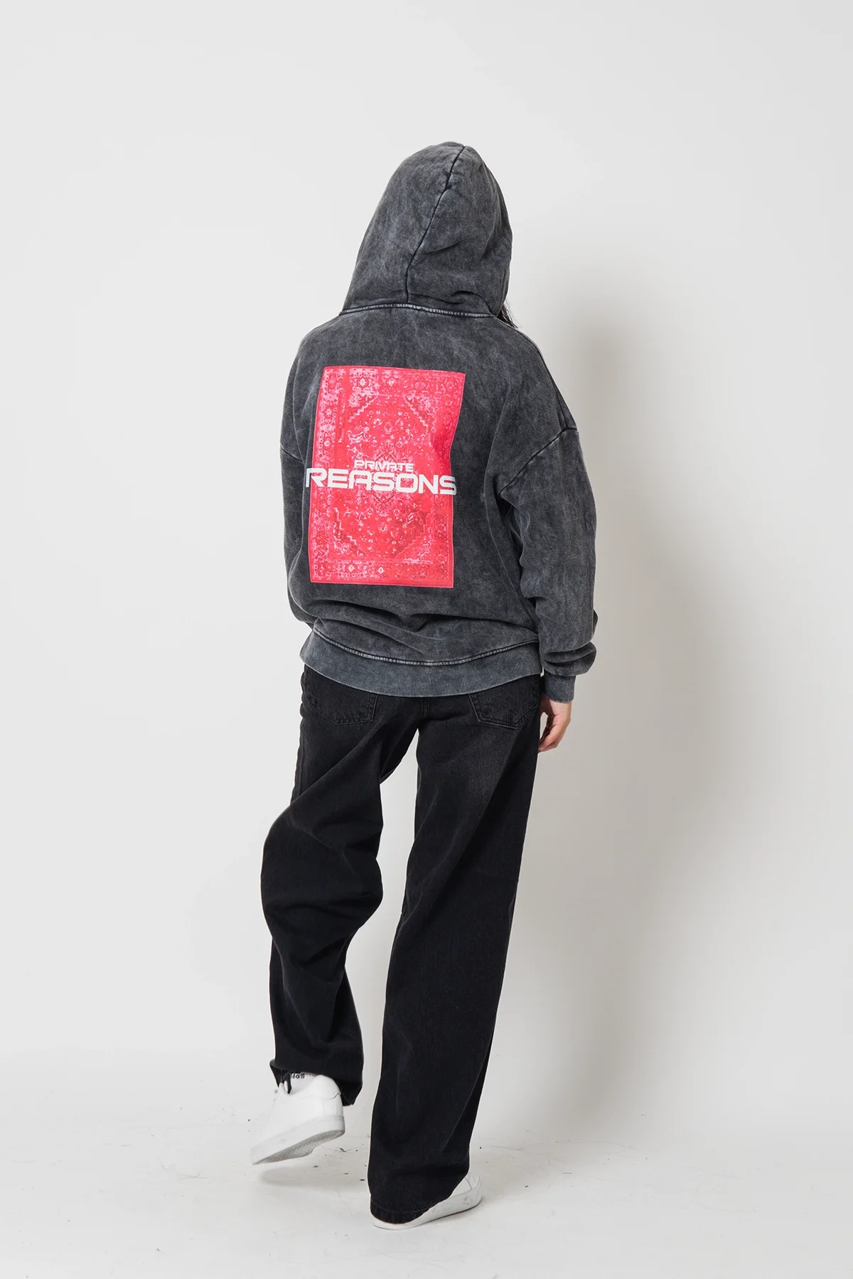 VIRTUAL TRACKS BASKILI OVERSİZE UNİSEX PREMİUM YIKAMALI SİYAH HOODİE
