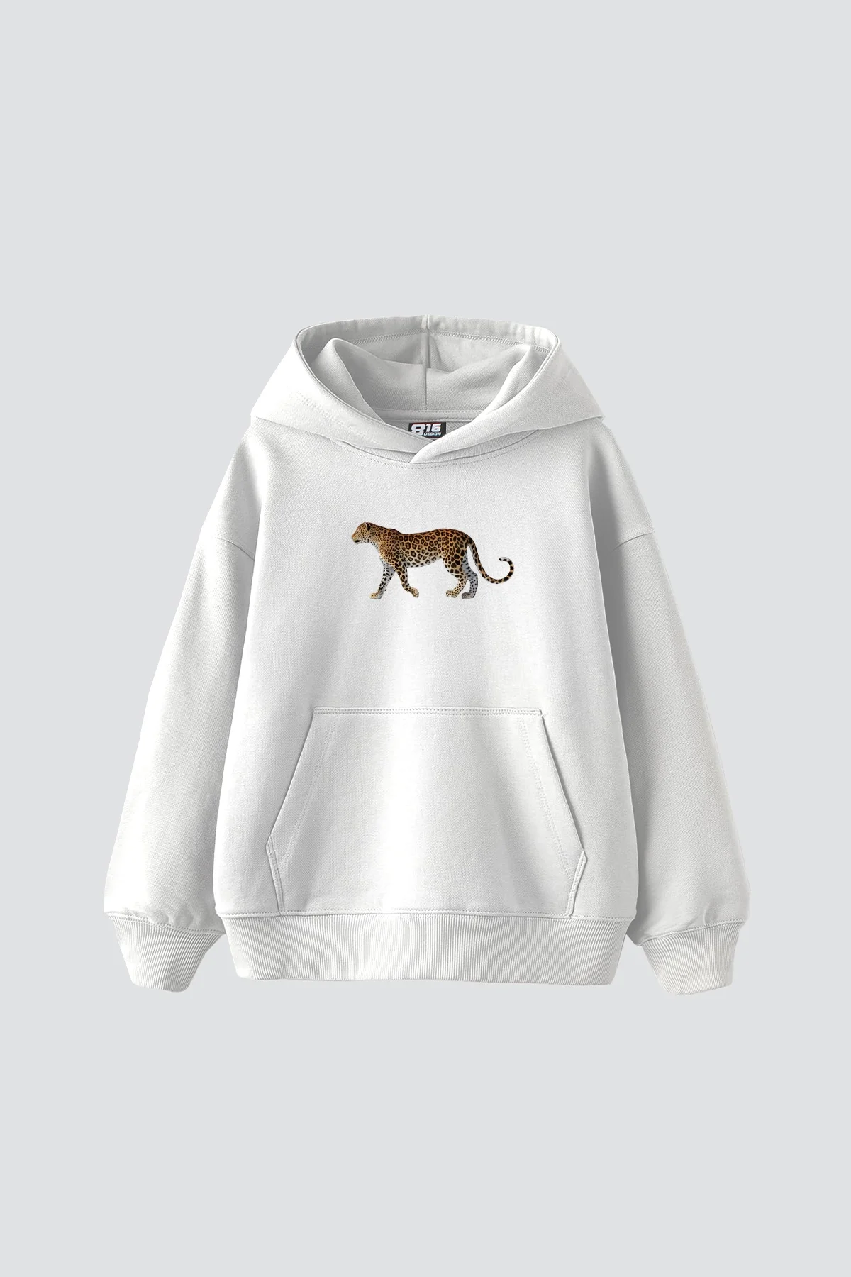 WALKİNG LEOPARD BASKILI OVERSİZE UNİSEX PREMİUM BEYAZ HOODİE