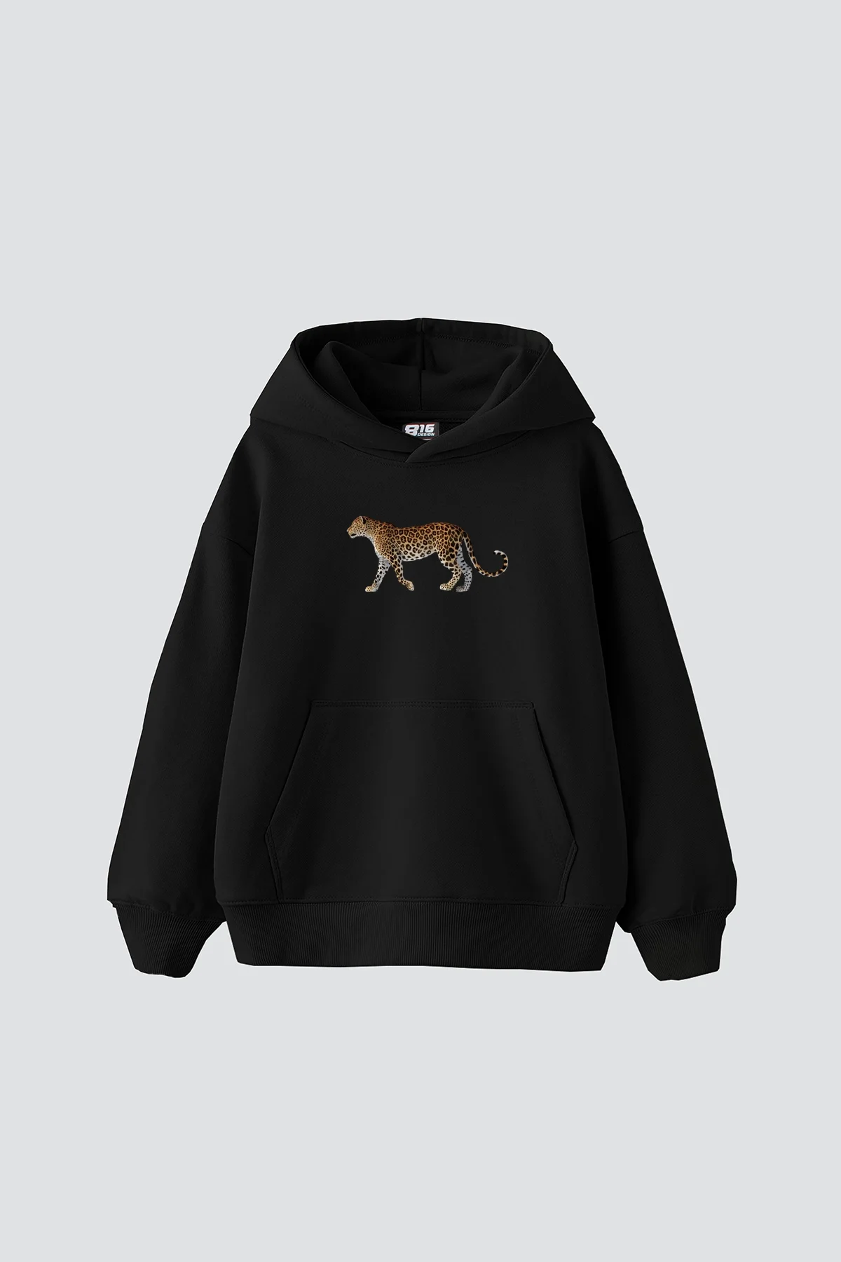 WALKİNG LEOPARD BASKILI OVERSİZE UNİSEX PREMİUM SİYAH HOODİE