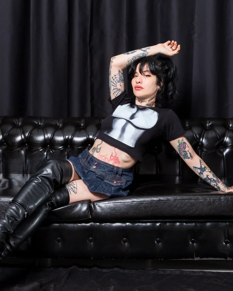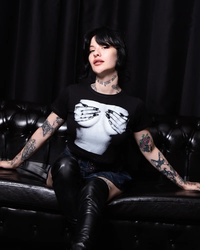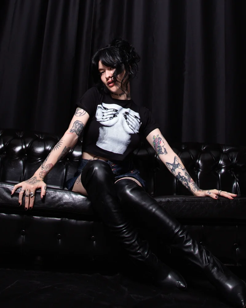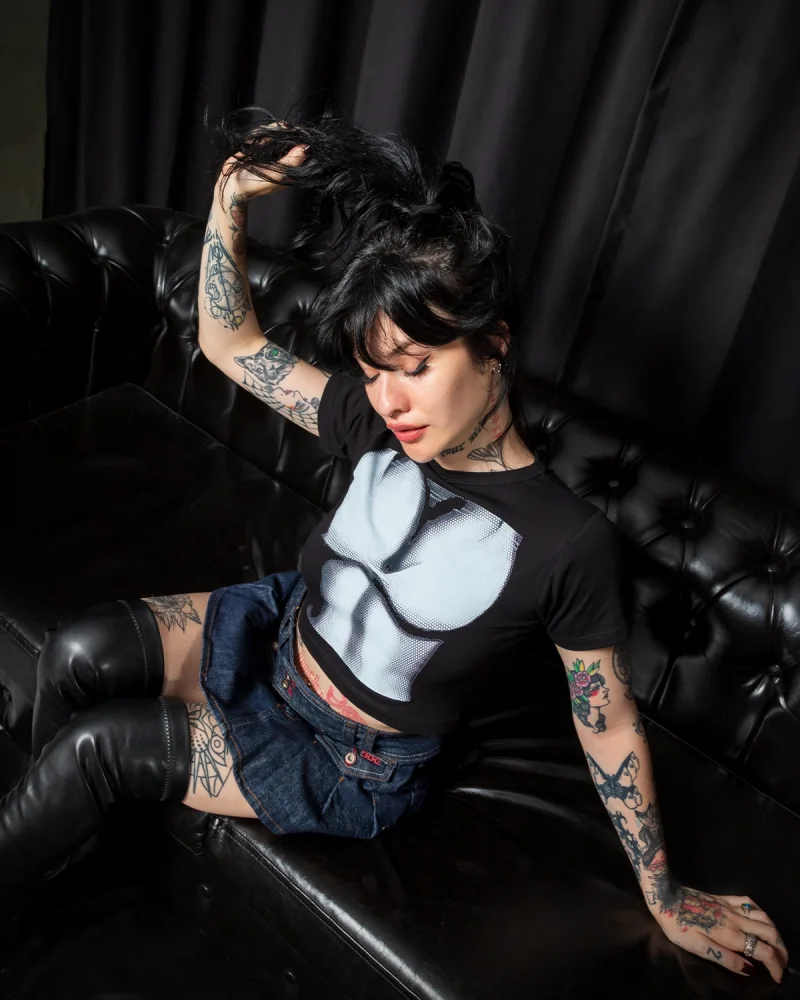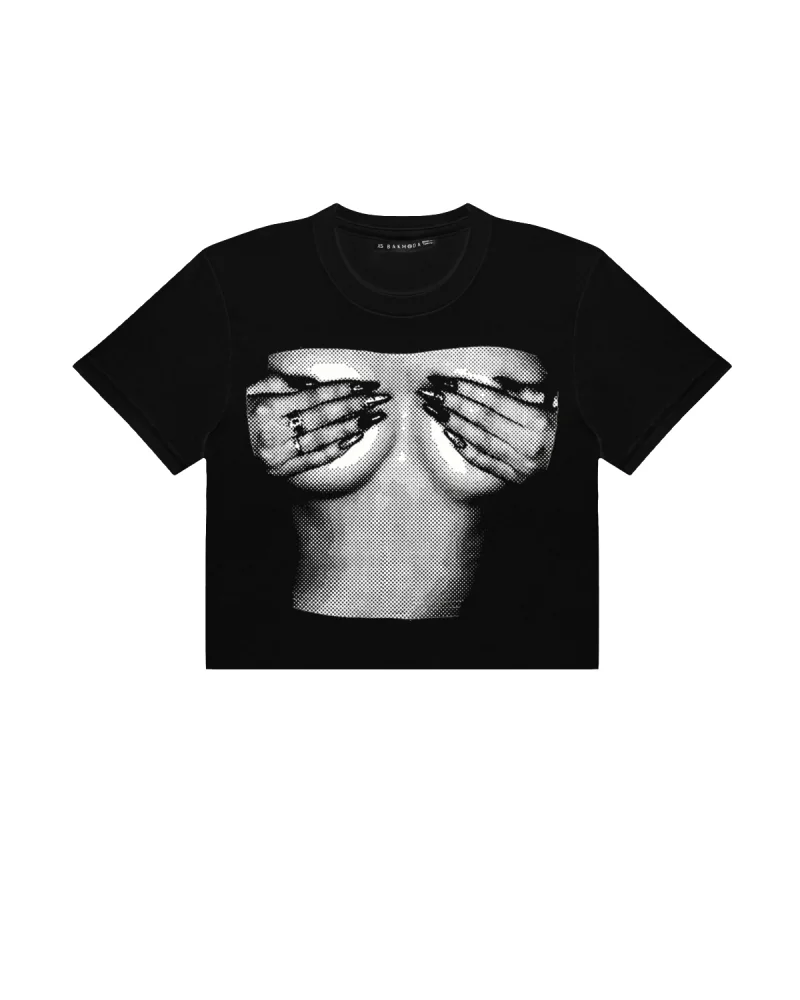 Silhouette Boobs V2 Baskılı Siyah Crop Top