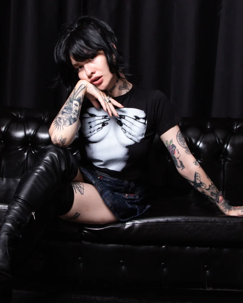 Pink Gotik Baskılı Oversize Unisex Yıkamalı Beyaz Tshirt