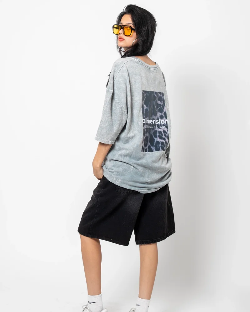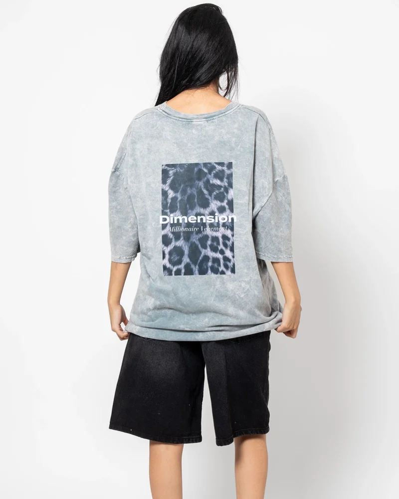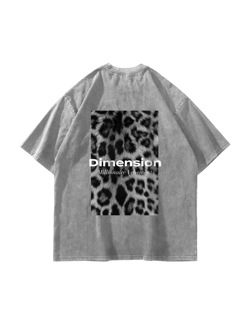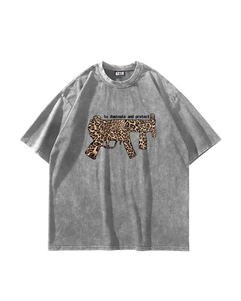 Dominante Leopar Baskılı Oversize Unisex Yıkamalı Beyaz Tshirt
