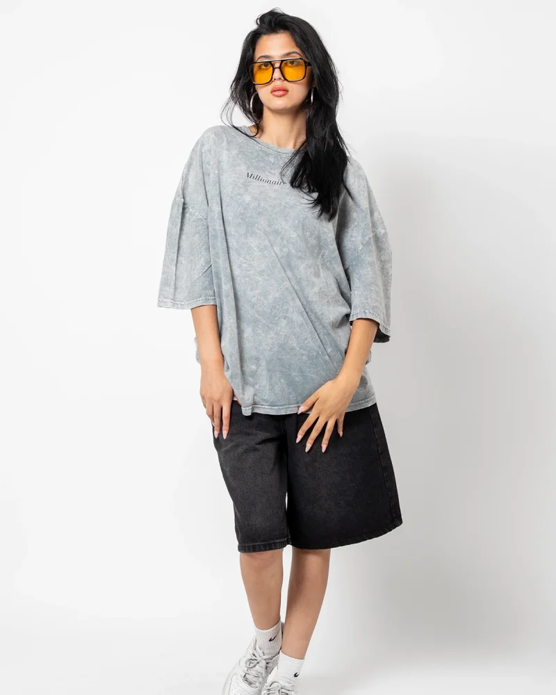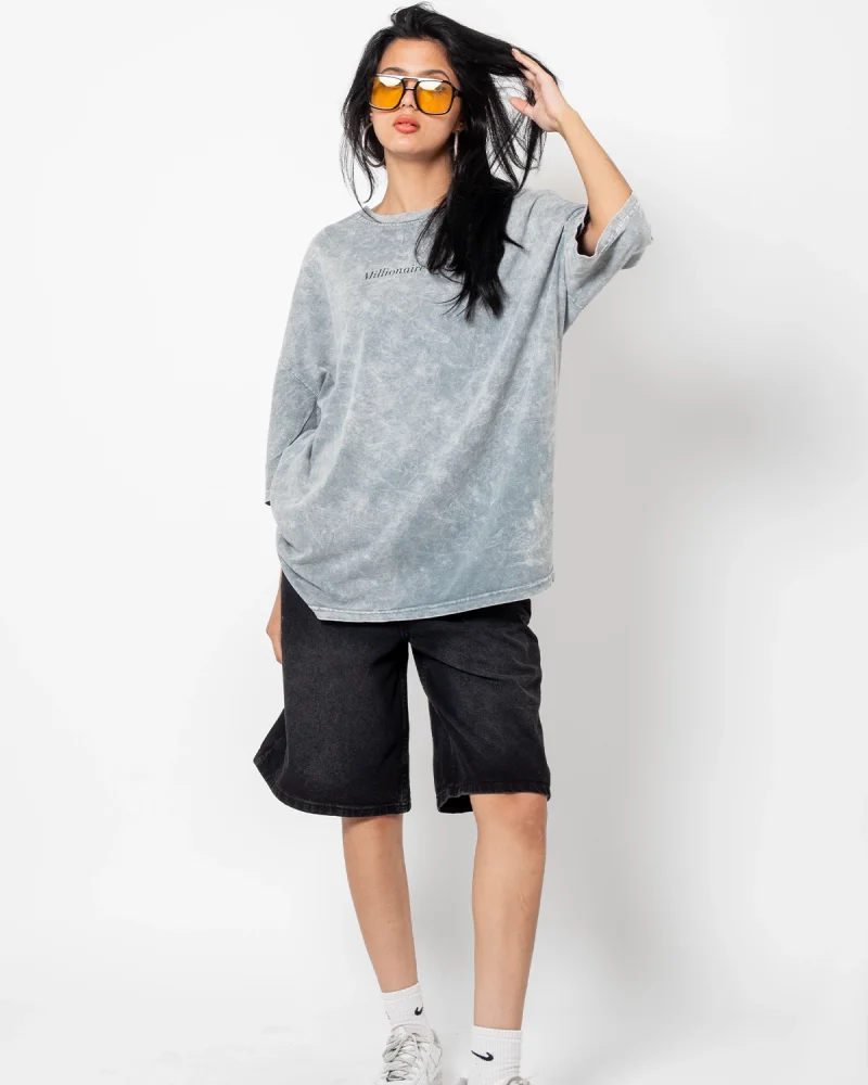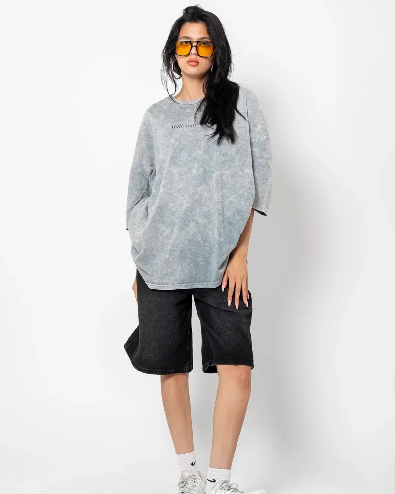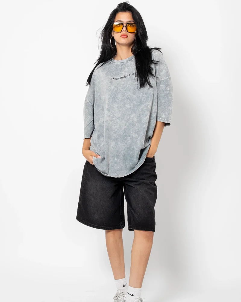Starz Leopar Baskılı 24/1 Oversize Unisex Yıkamalı Siyah Tshirt