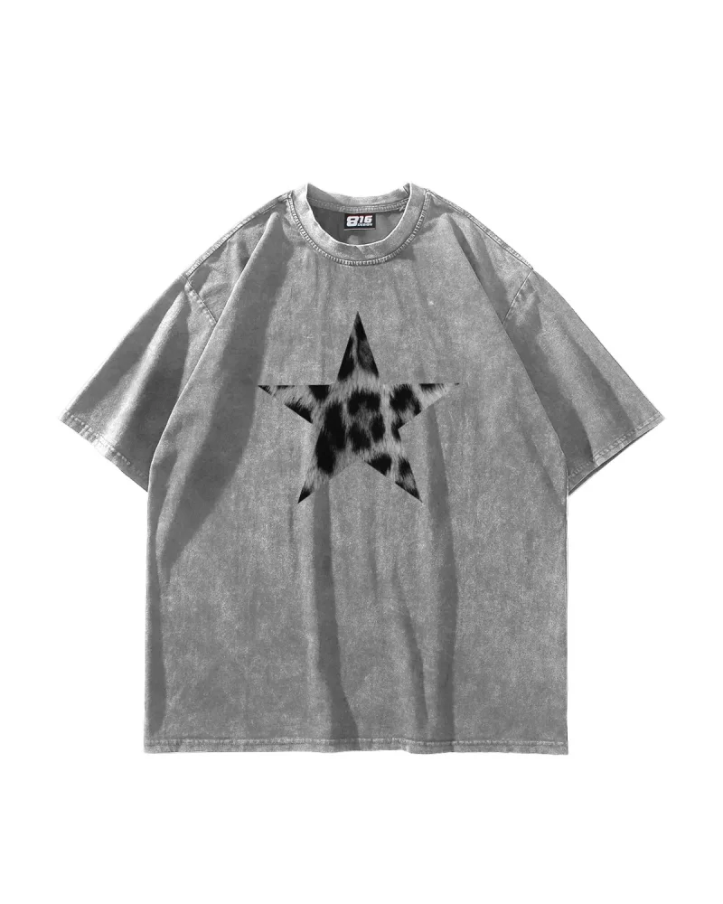 Starz Leopar Baskılı "V2" 24/1 Oversize Unisex Yıkamalı Beyaz Tshirt