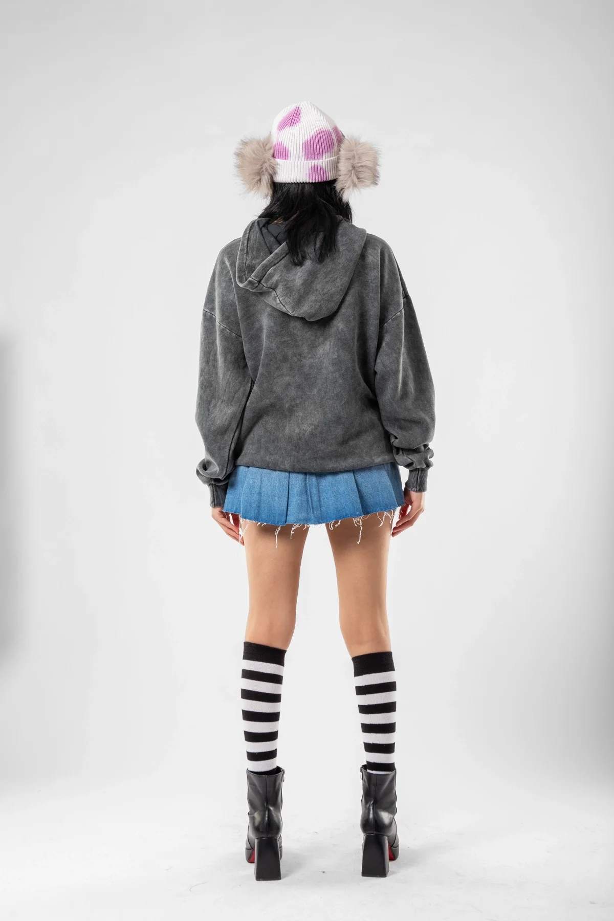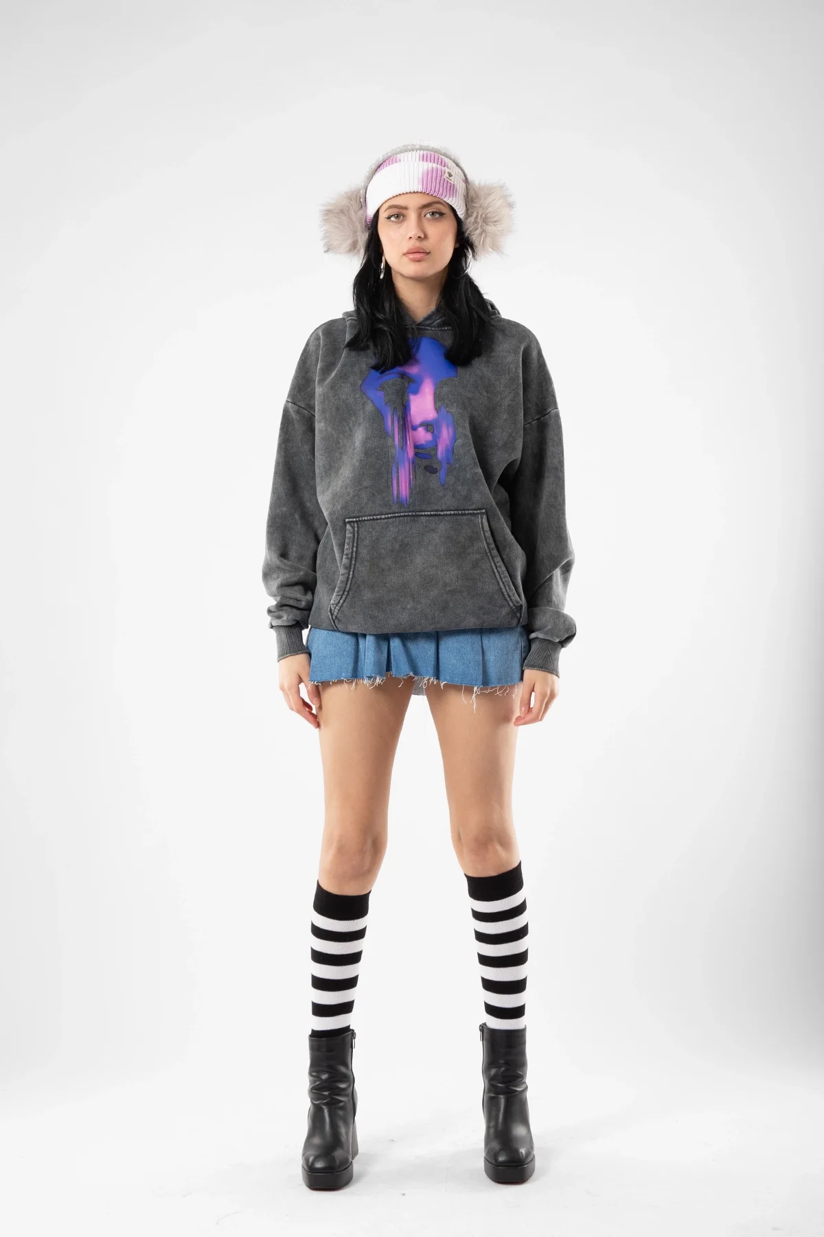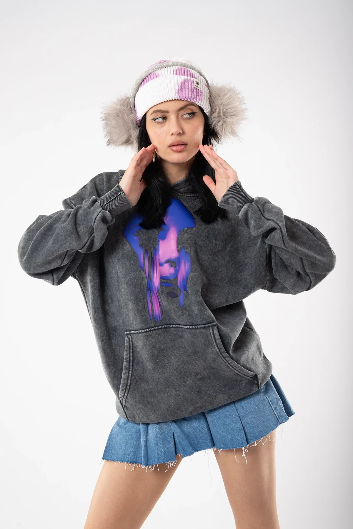 YIKAMALI LANA BASKILI OVERSİZE UNİSEX FÜME HOODİE