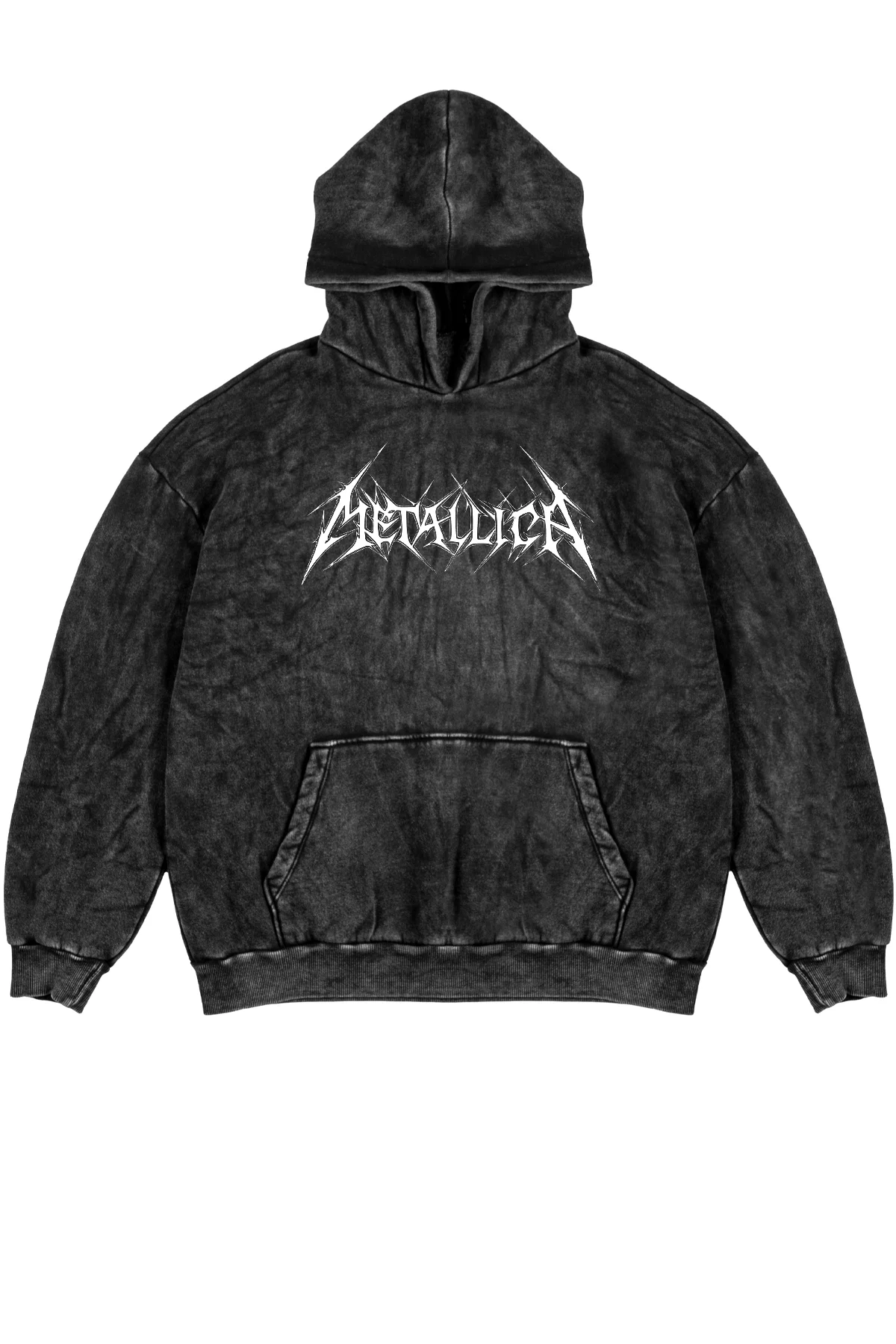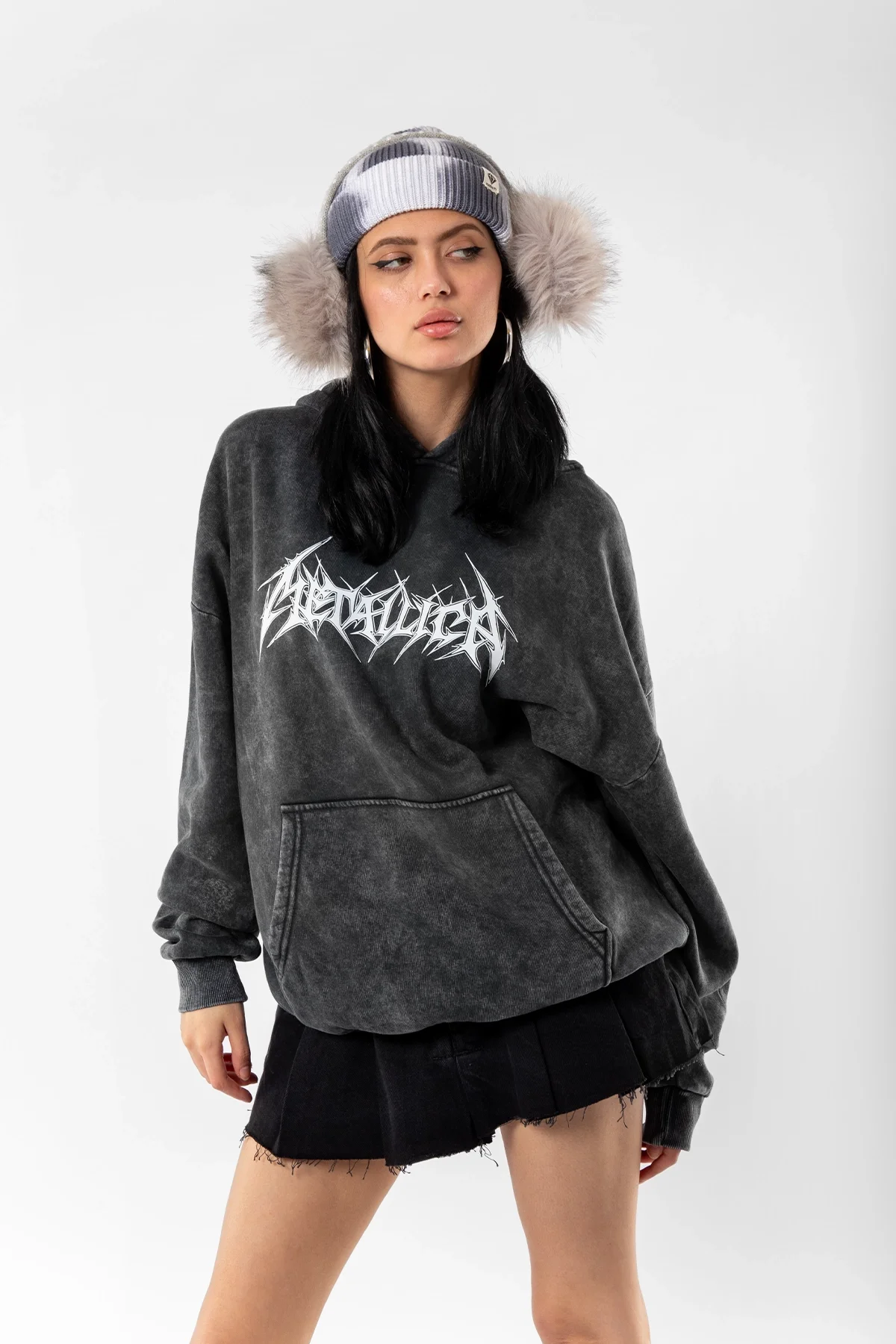 YIKAMALI METALLİCA LOGO BASKILI OVERSİZE UNİSEX FÜME HOODİE