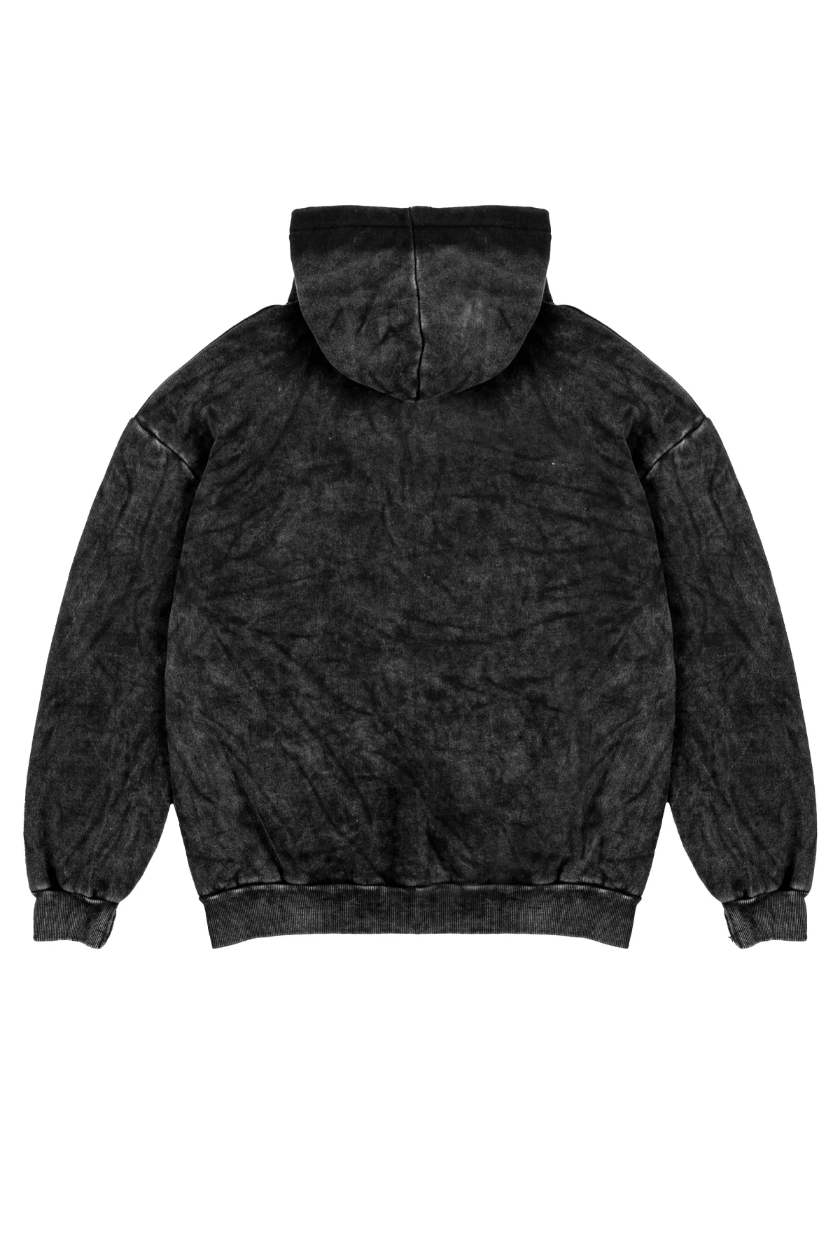 Angel Stitch Baskılı Oversize Unisex Yıkamalı Siyah Hoodie