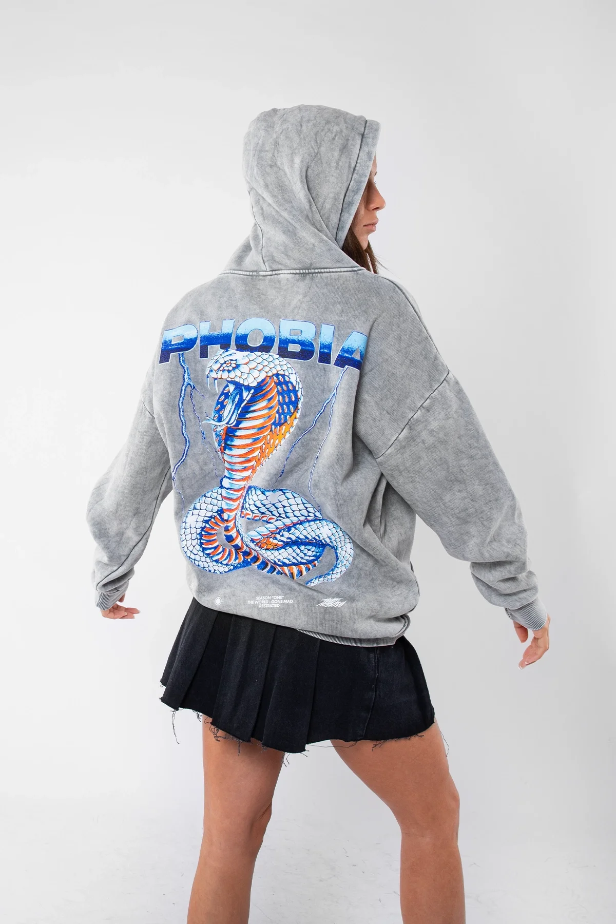 YIKAMALI BEYAZ PHOBİA SIRT BASKILI UNİSEX OVERSİZE HOODİE