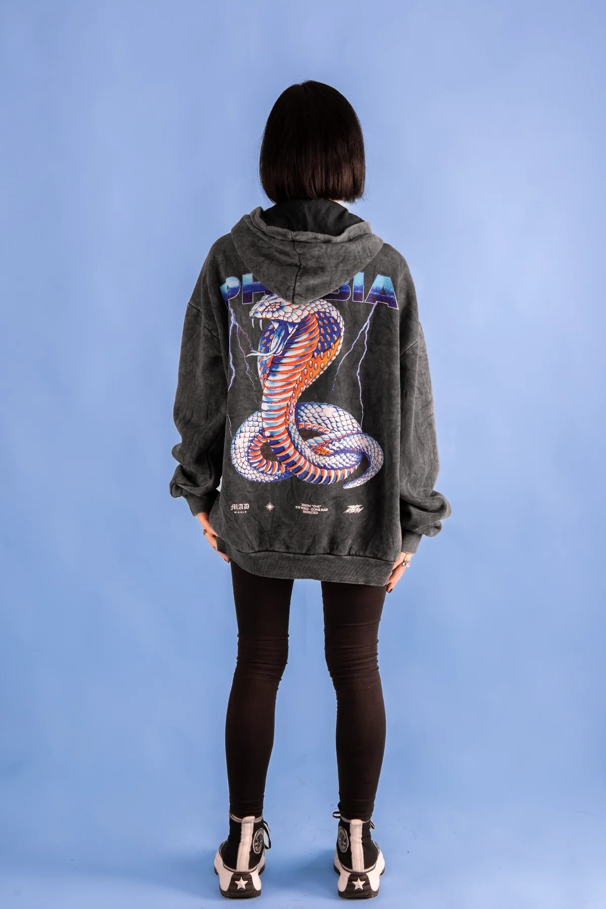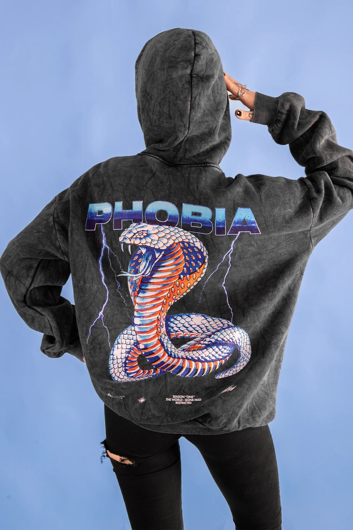 YIKAMALI PHOBİA SIRT BASKILI UNİSEX OVERSİZE SİYAH HOODİE